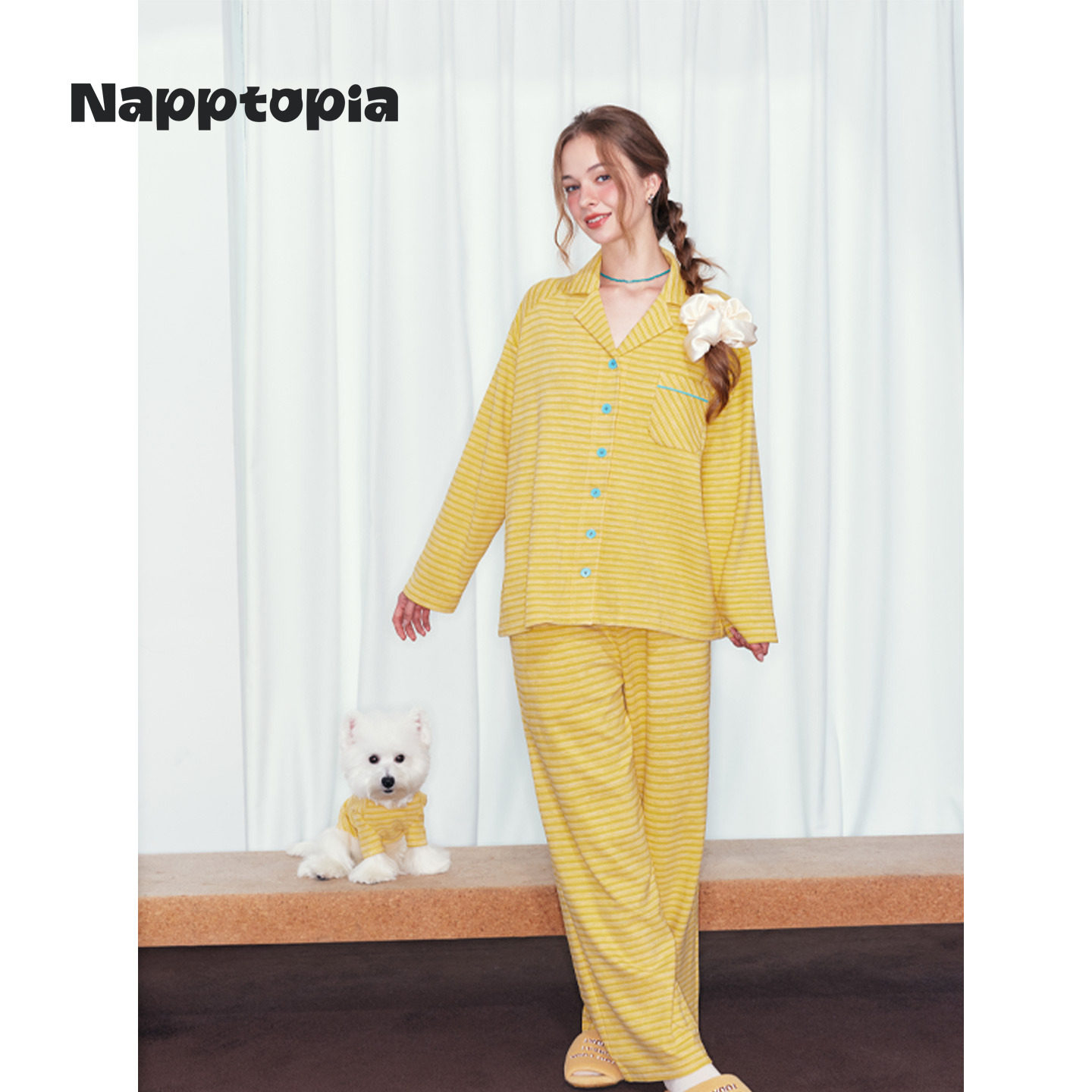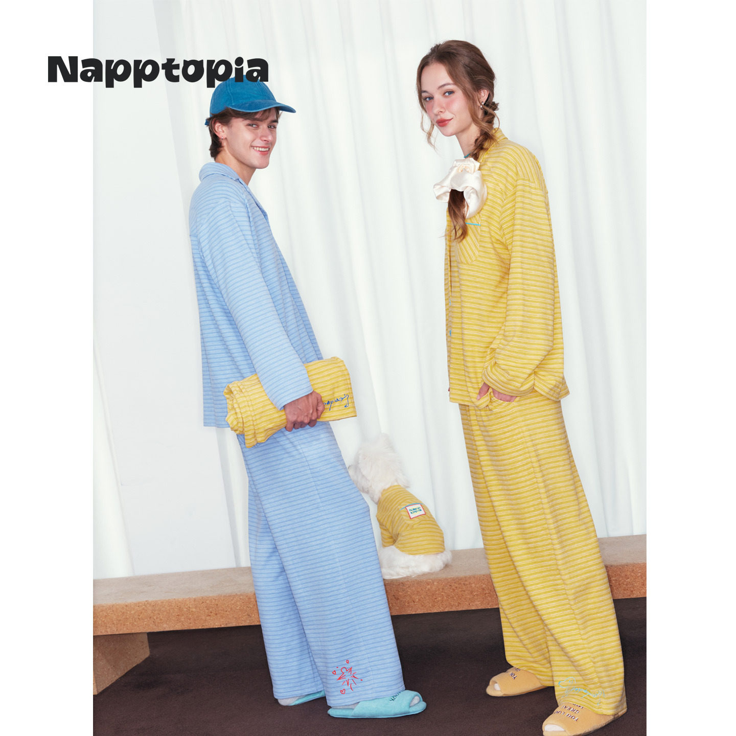 NAPPTOPIA呐噗【晴空暖阳】秋冬磨毛德绒情侣家居服条纹睡衣套装