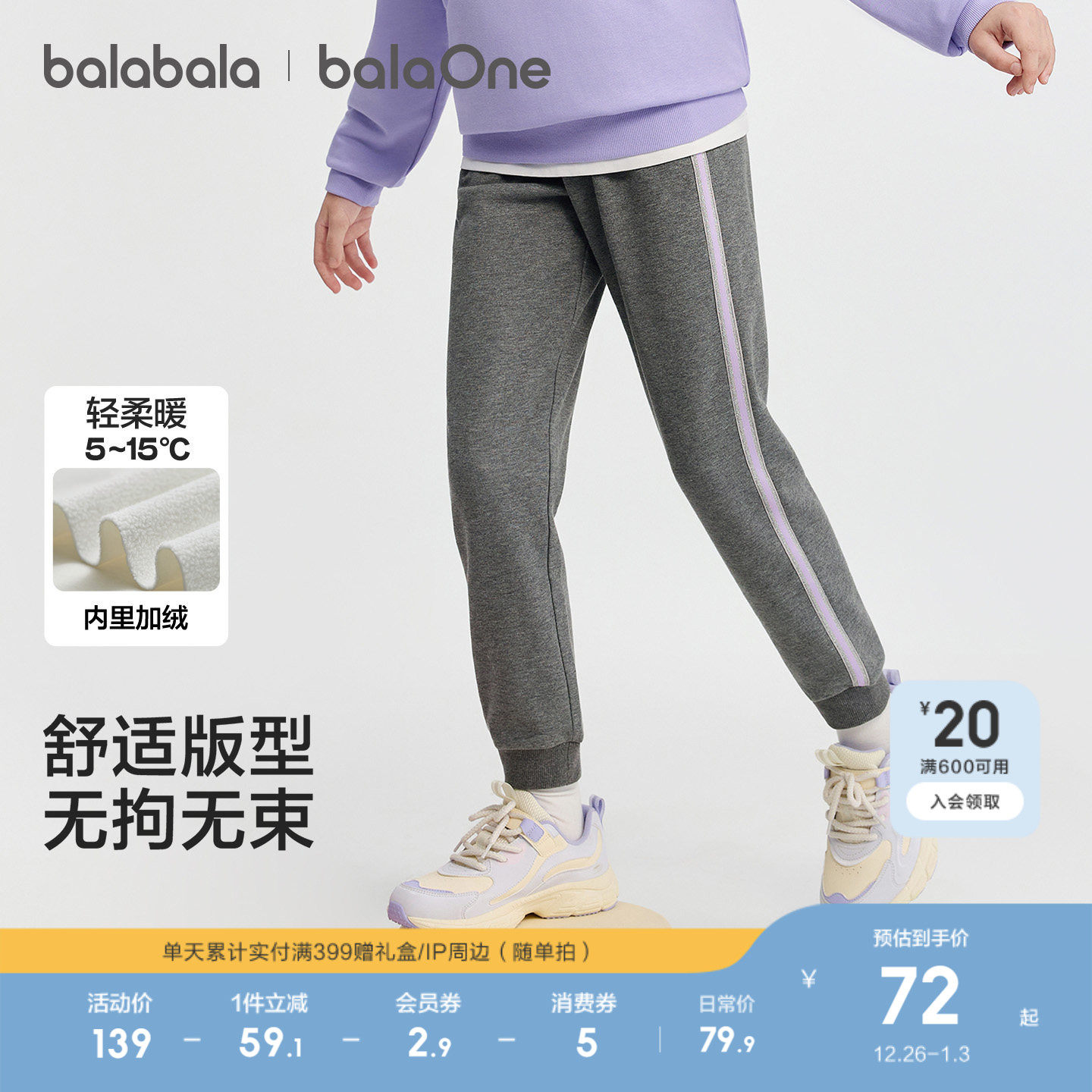 巴拉巴拉童装女童加绒裤子2025秋冬装新款儿童运动长裤加厚保暖潮