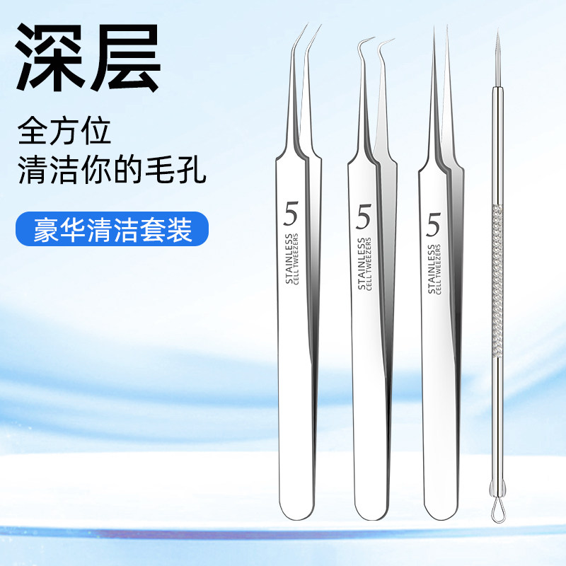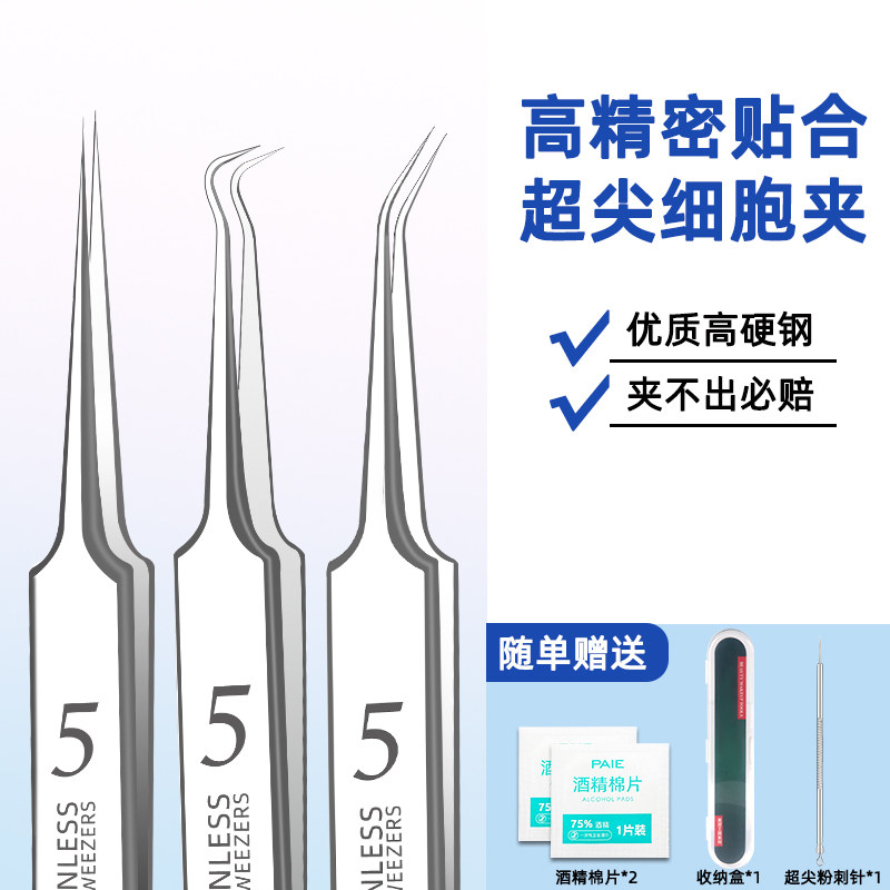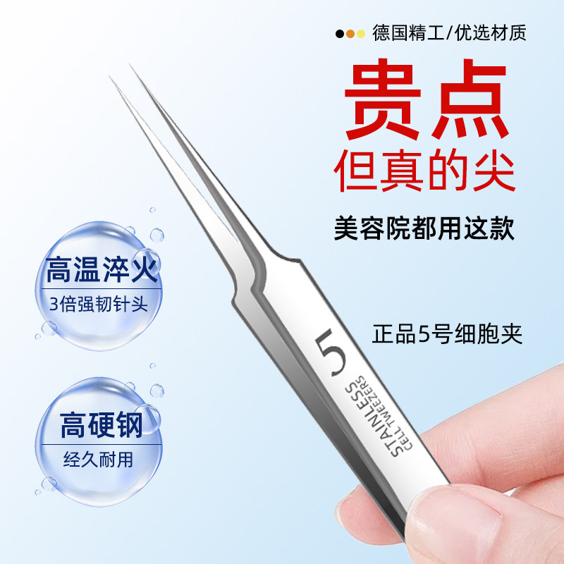 超细5号细胞夹美容院专用拔黑头镊子尖头去汗毛孔粉刺针套装工具