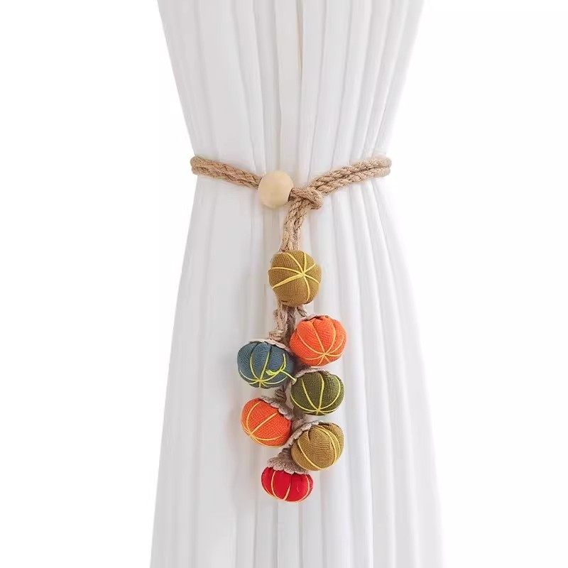 新款窗帘捆绑带卡通布艺南瓜串纱帘扎束带可爱挂球收纳扣麻绳挂件