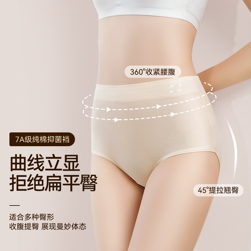 猫人女士内裤女生纯棉抗菌100%全棉裆高腰收腹胖mm大码三角短裤衩