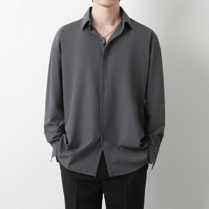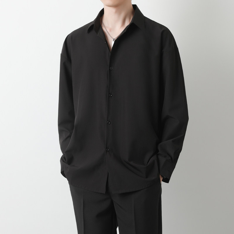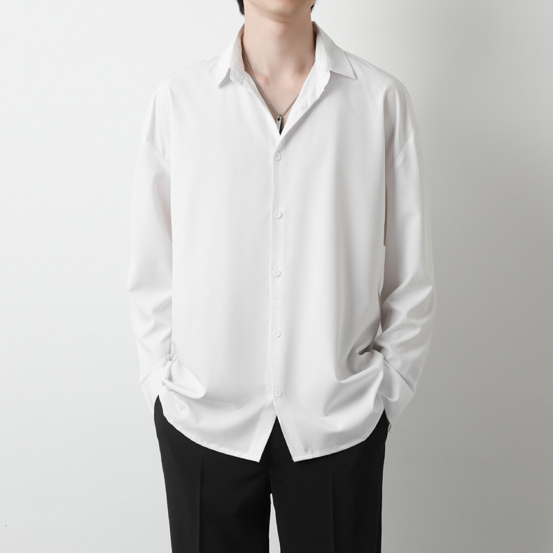 高级感免烫长袖衬衫男士黑色痞帅白色衬衣dk宽松大码外套抗皱春秋