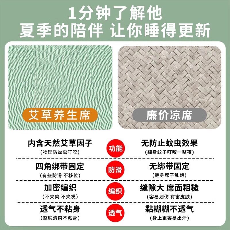 夏季艾草冰丝凉席竹席2026新款夏天草席a类母婴藤席可机洗软席子