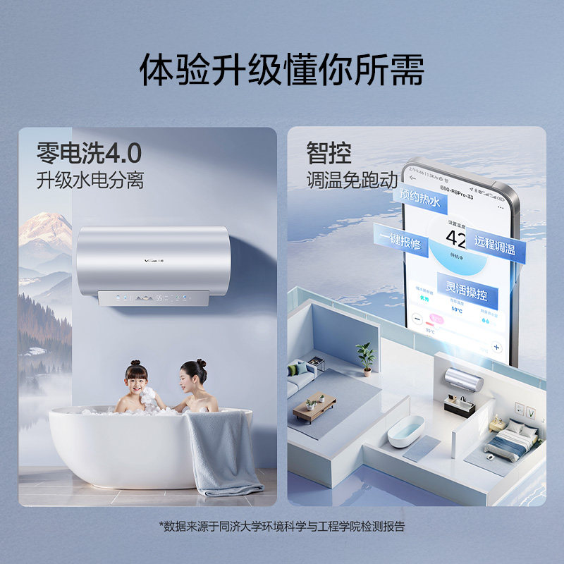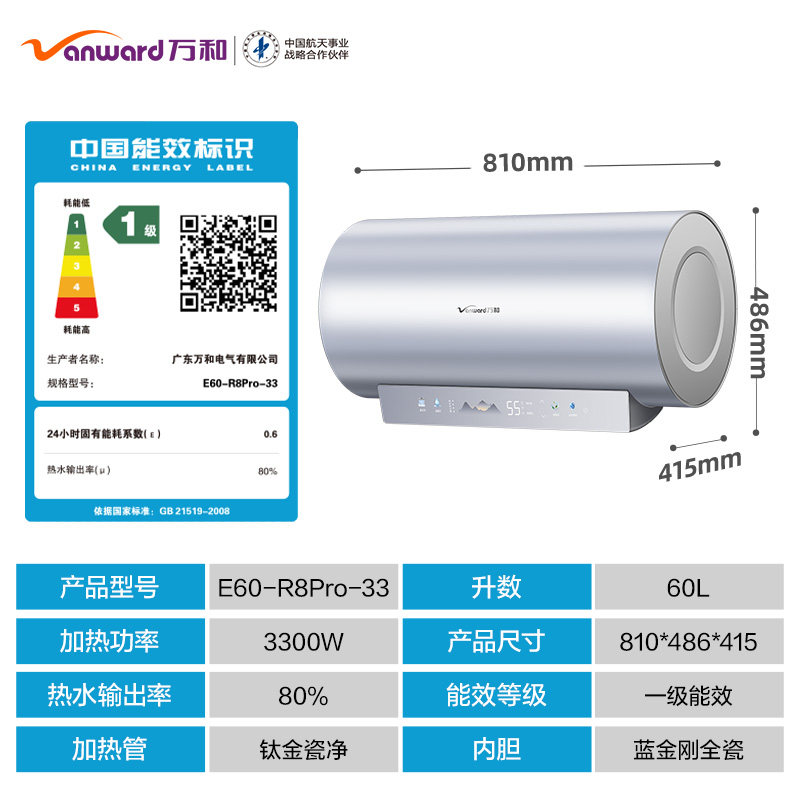 [政府补贴]万和长白山R8Pro电热水器纳米气泡洗60L速热电家用80L