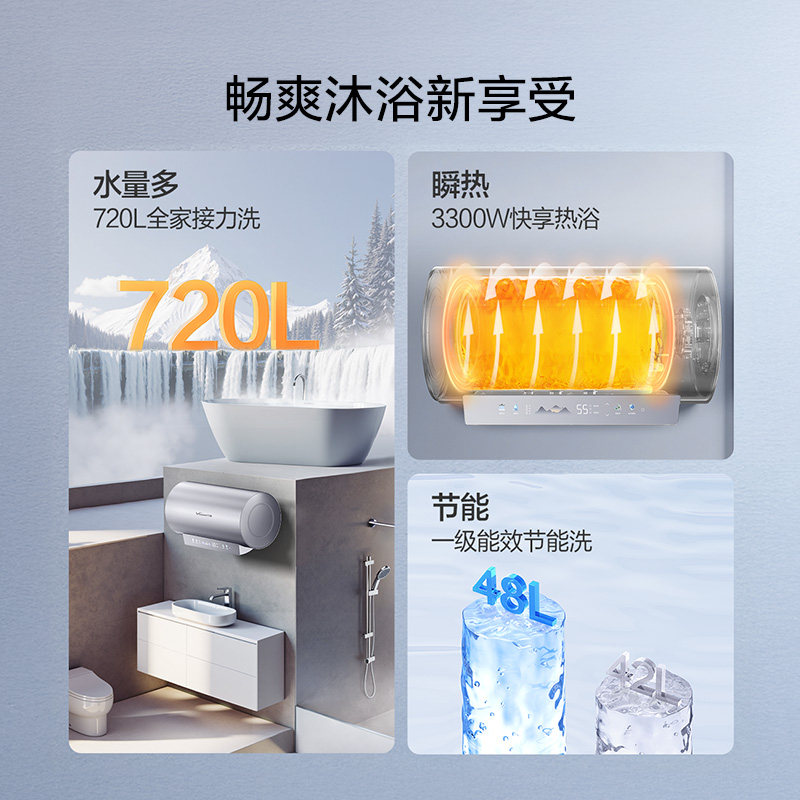 纳米气泡黑科技 高颜值净浴润肤 3.3kW速热