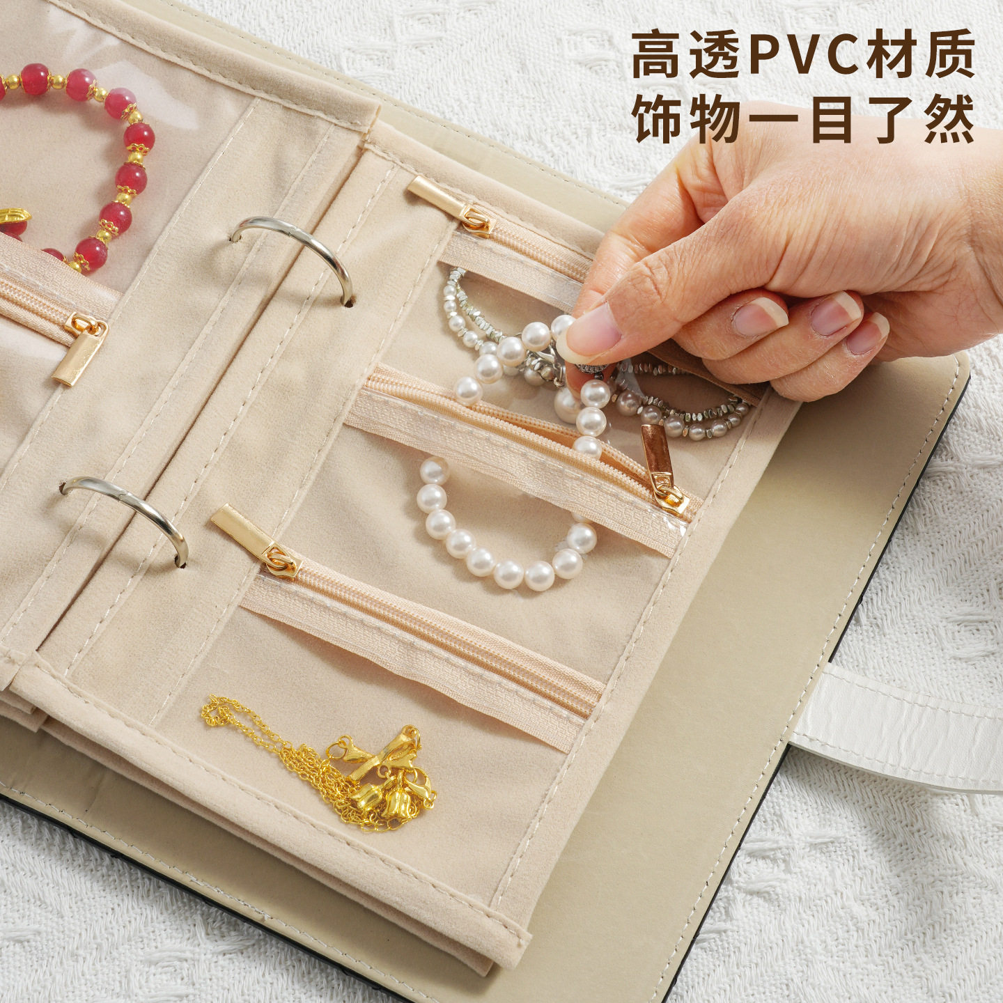 黄金首饰收纳册高级感轻奢活页透明密封袋分格防氧化外出便携旅行防探测尘保存珠宝戒指项链手链镯收纳专用包