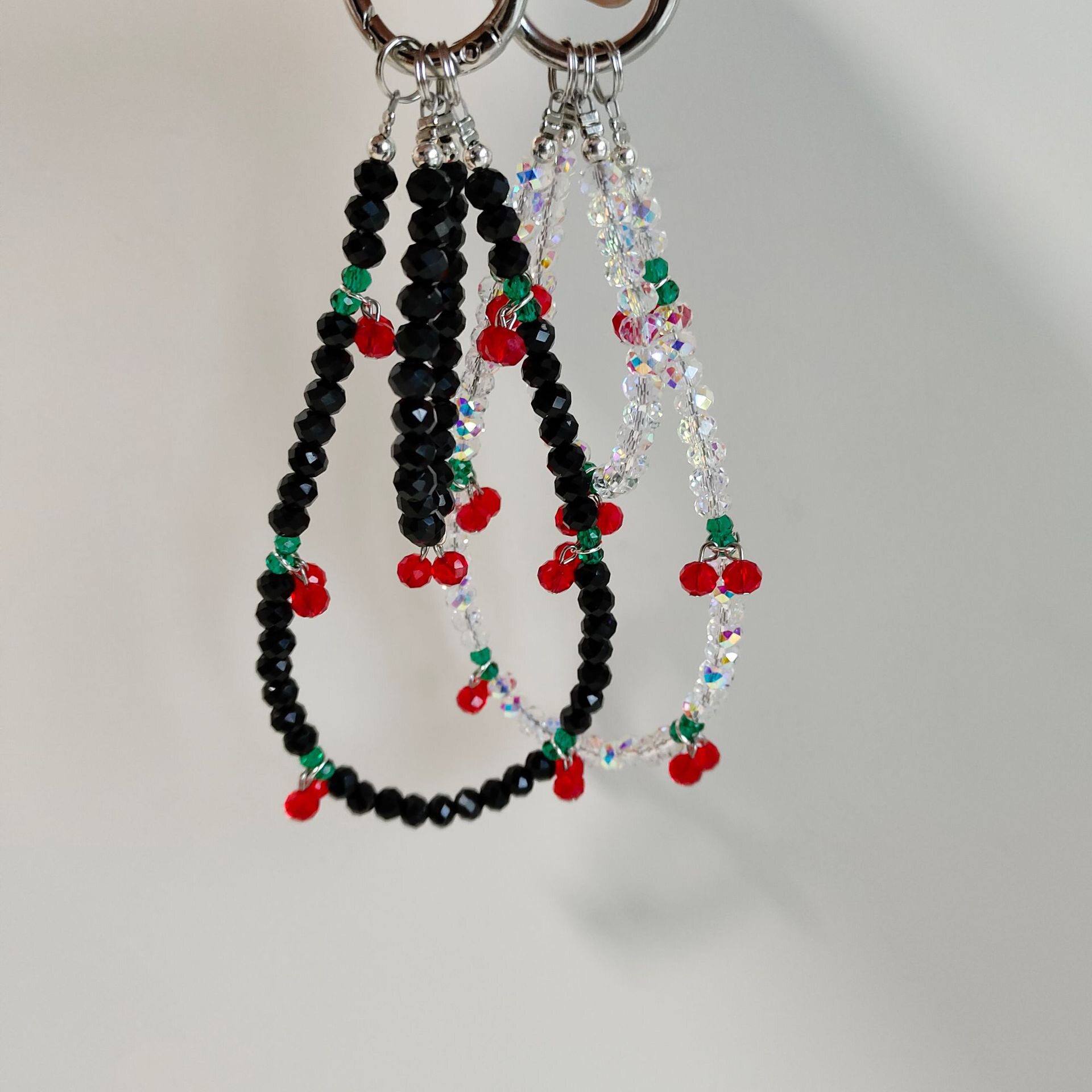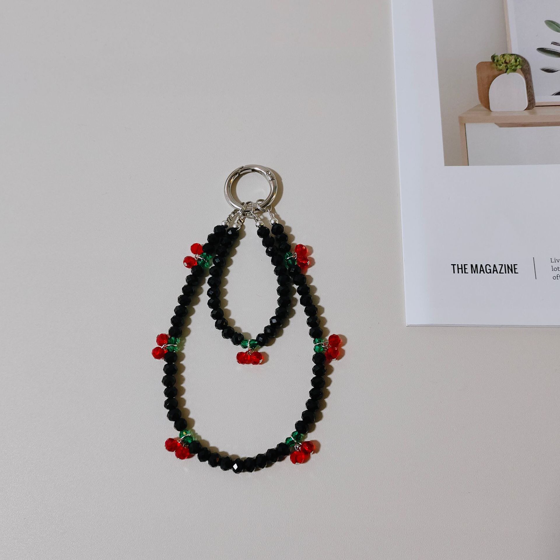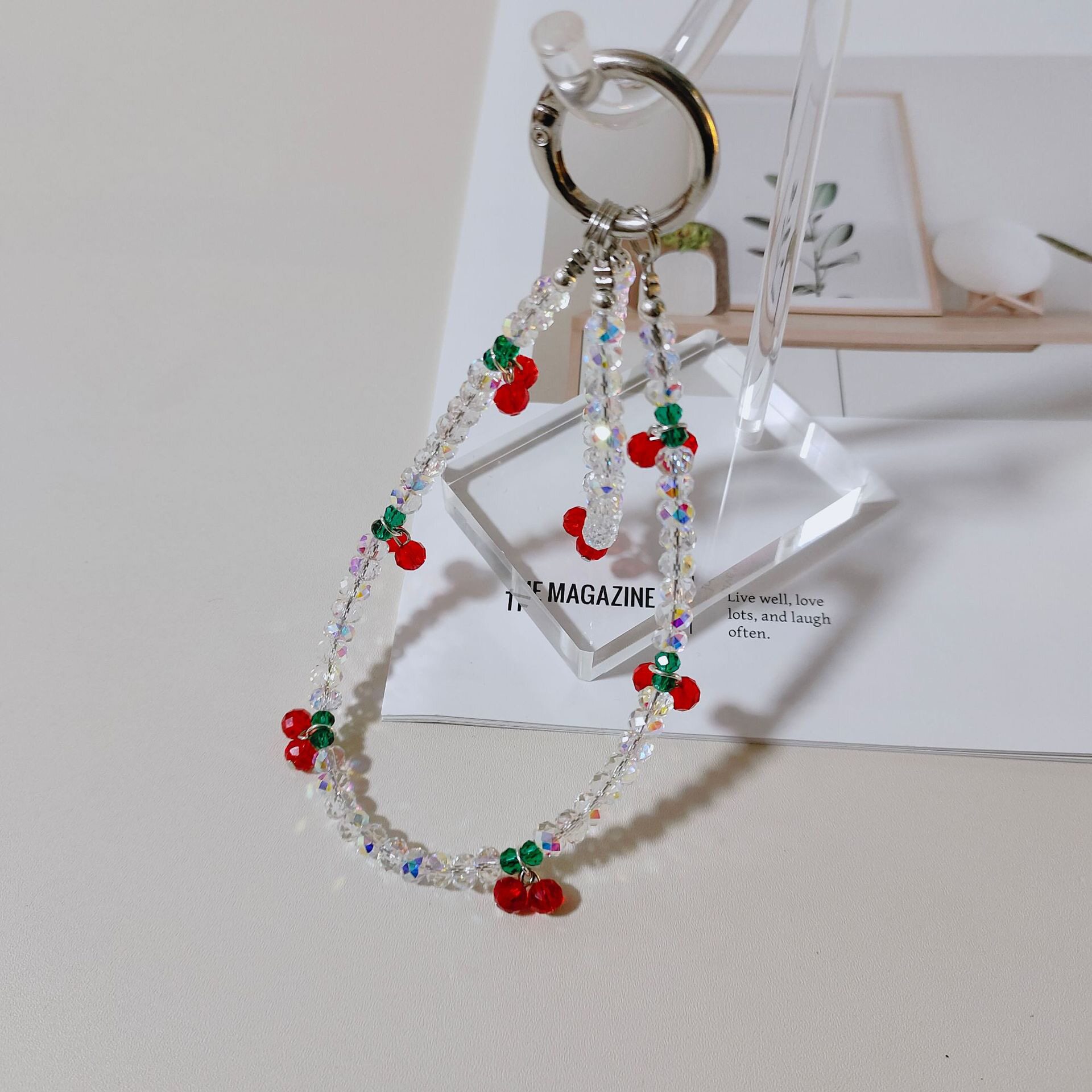 韩版樱桃ins风时尚可爱红樱桃串珠水晶手机挂绳包包钥匙扣挂件