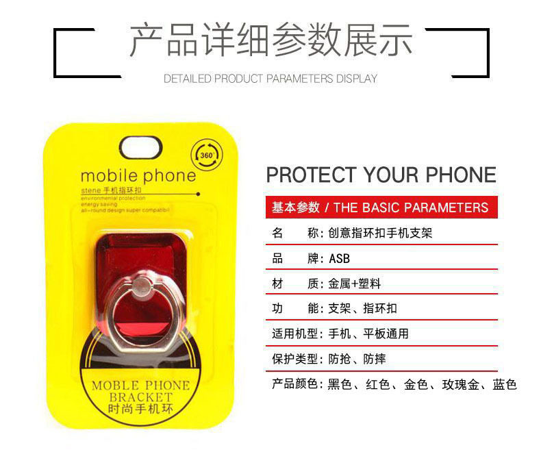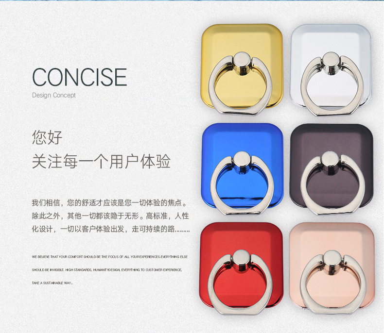 指环扣 电镀方块高光 方形手机指环支架 亮面粘贴式360度旋转支架