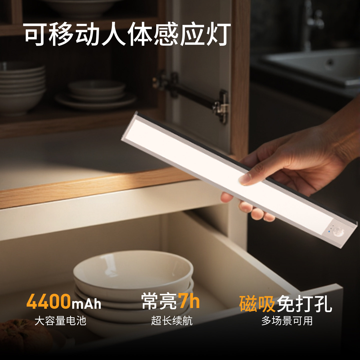 人体感应小山丘LED橱柜灯带充电式磁吸无线自粘客厅酒柜鞋柜灯条