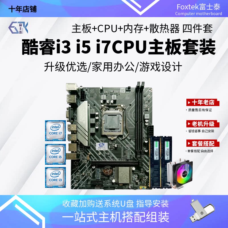 酷睿i3 i5 i7台式机B85电脑主板CPU套装4790 9400F 9700K四件套