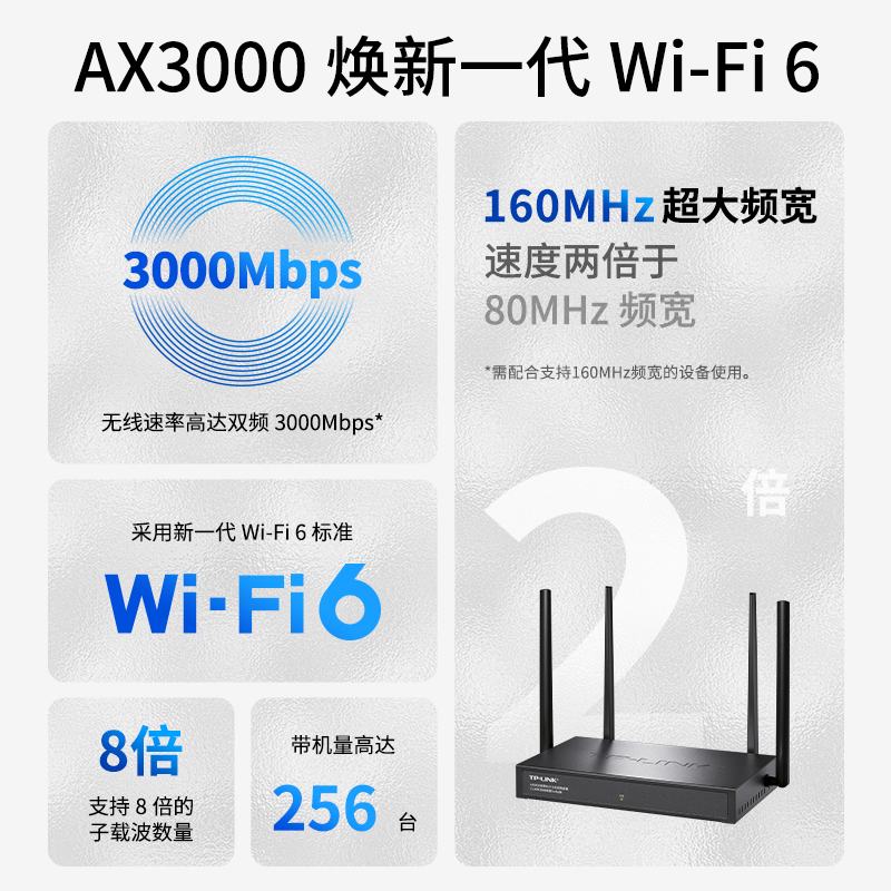 普联TP-LINK WiFi6 AX3000全千兆企业路由器 千兆端口家用高速wifi tplink XDR3068