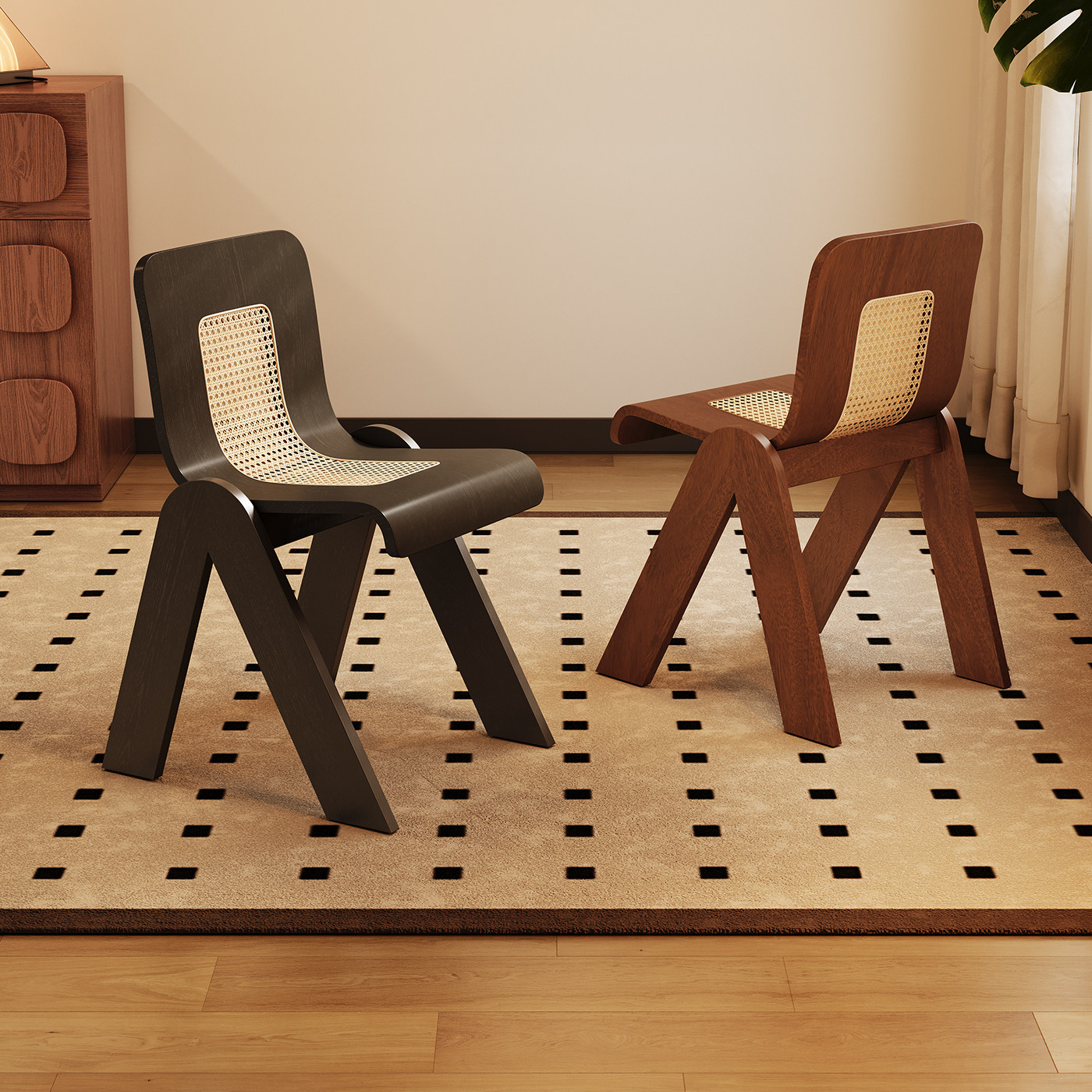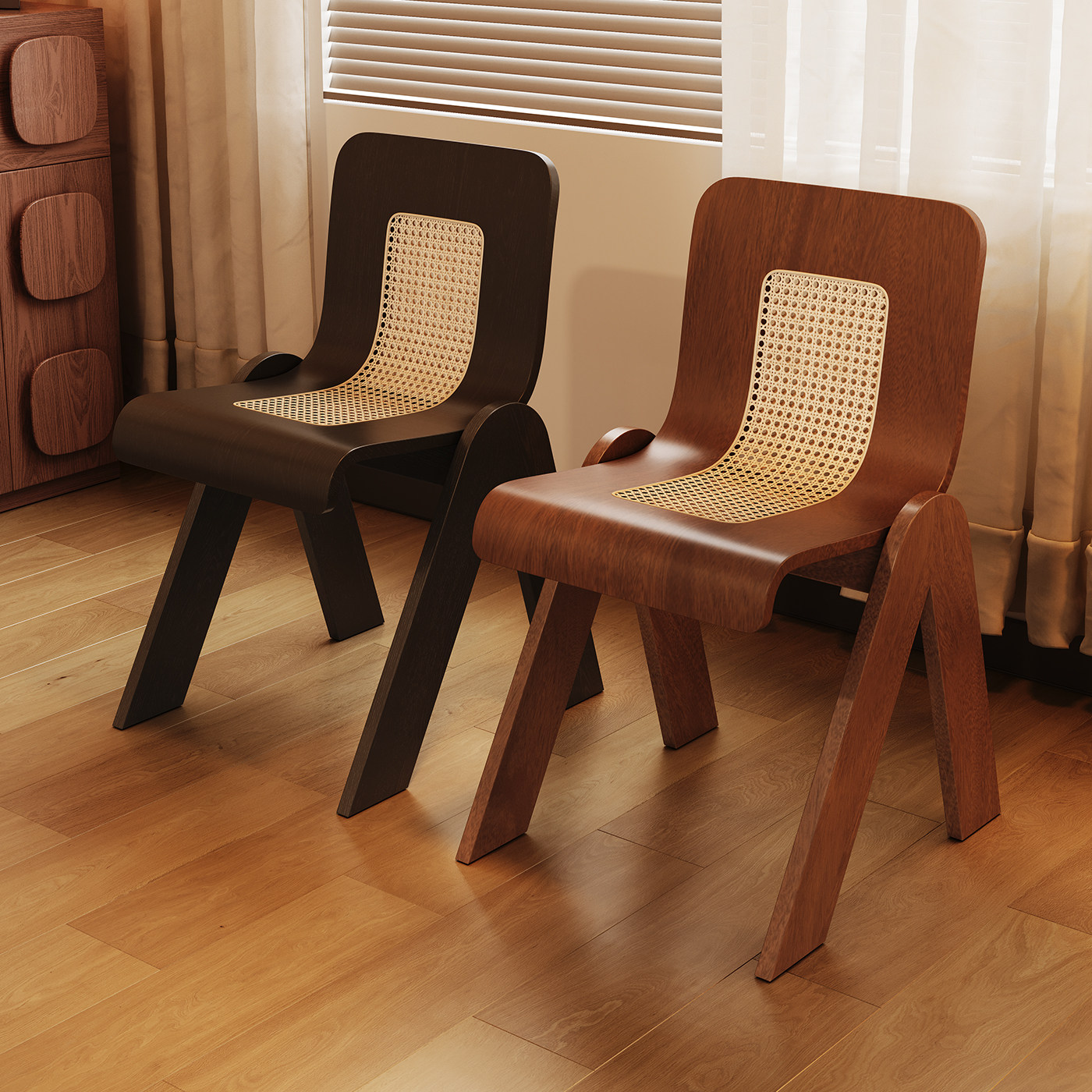 轻奢侘寂风餐椅皮软包设计师现代弯曲木咖啡厅实木椅子家用书房椅