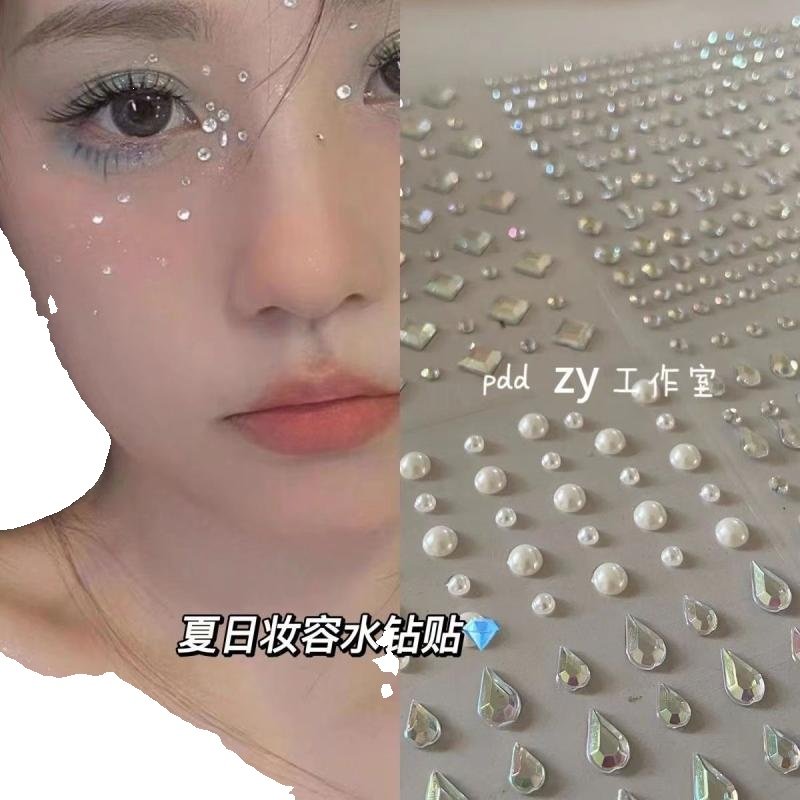 钻石珍珠贴面妆舞台妆容脸部贴水钻泪钻闪钻美甲贴饰品星星水滴