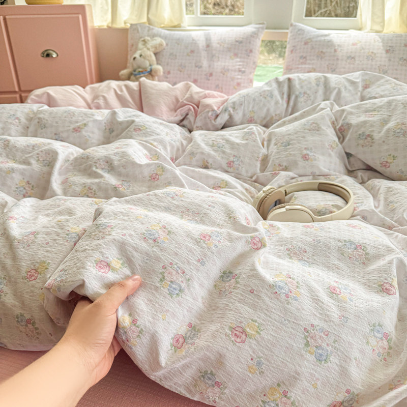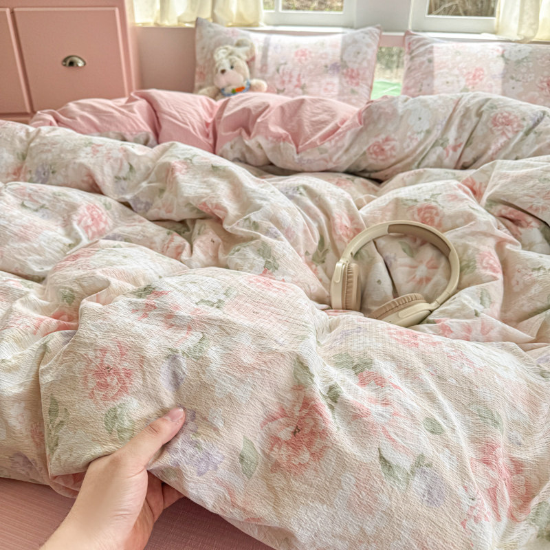 A类双层纱床上四件套纯棉全棉新款田园床单件被套被罩宿舍三件套4
