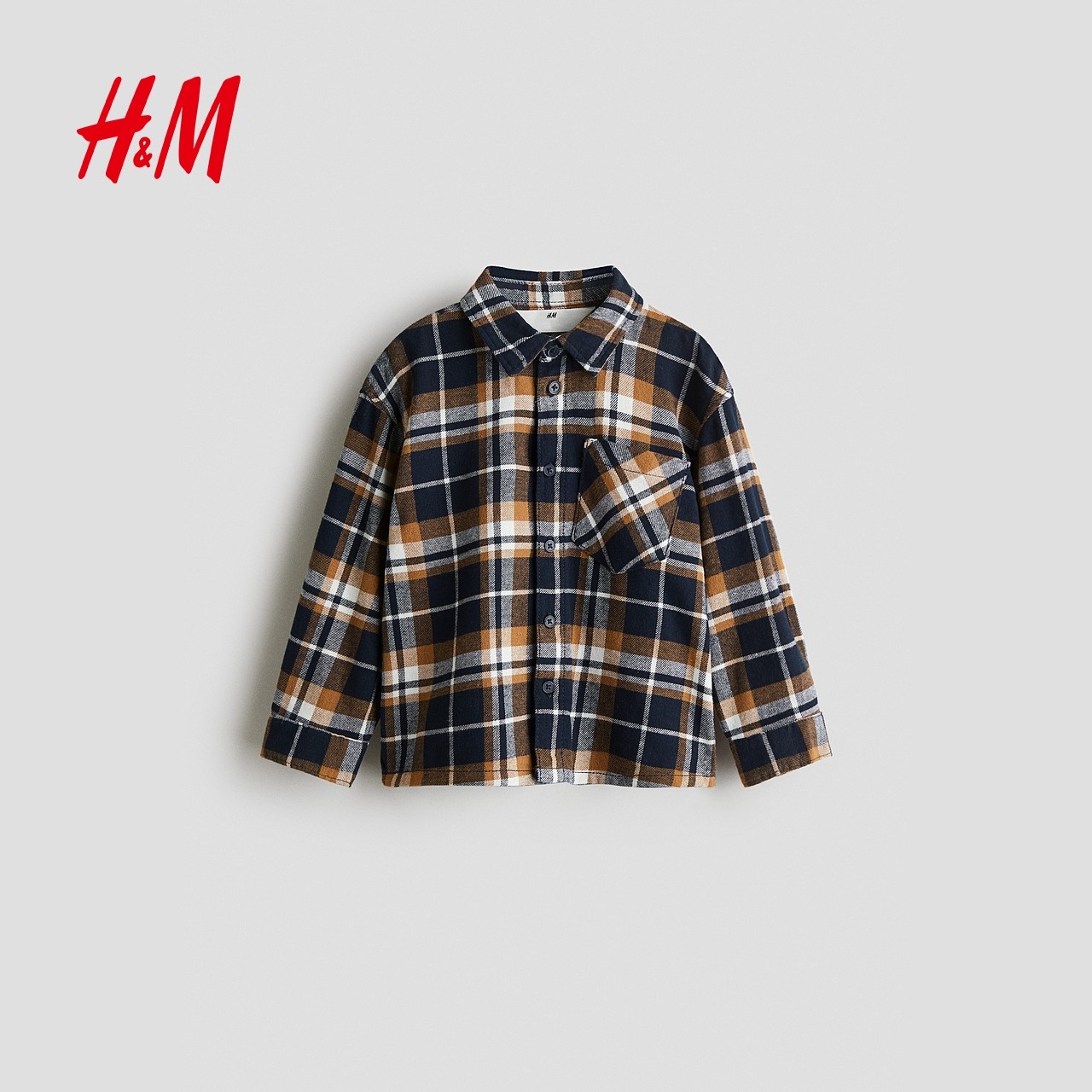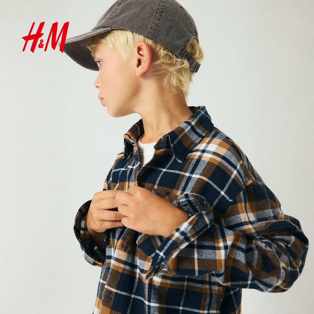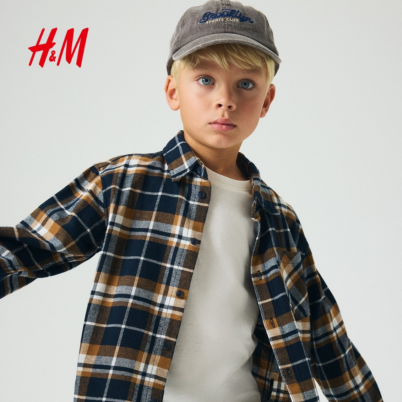 HM2025冬童装儿童男童衬衫休闲英伦风法兰绒帅气长袖外套1163548