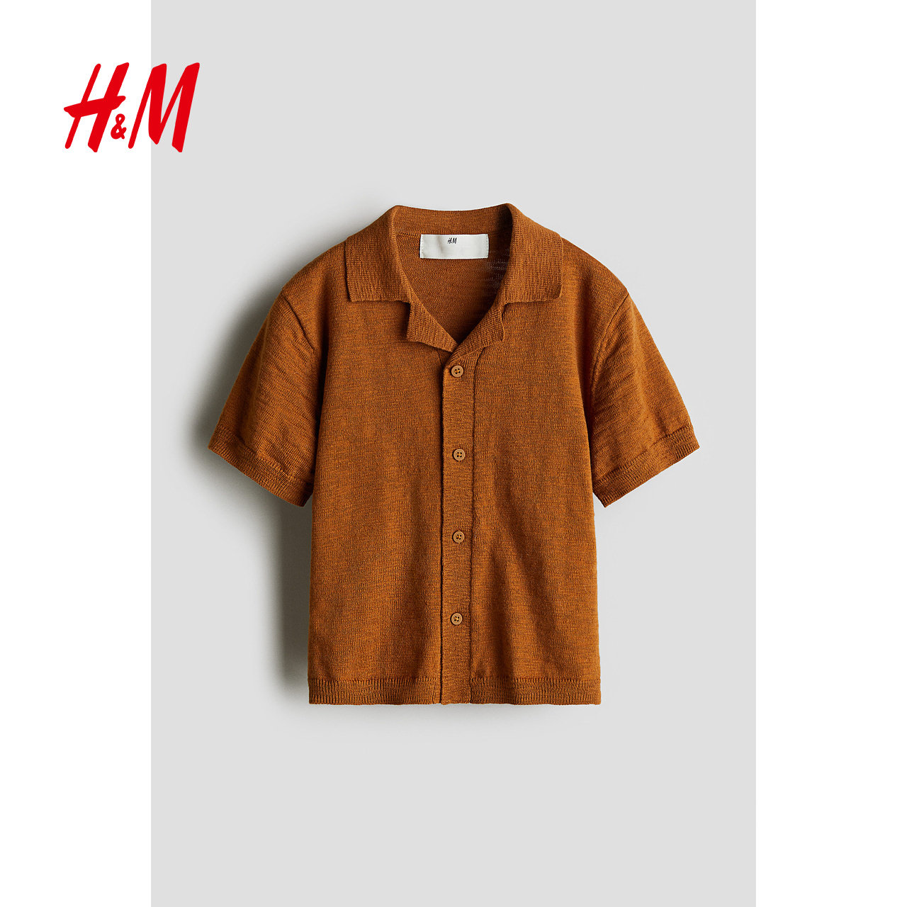 HM童装儿童男童2025年冬季新款细密针织古巴领衬衫1272111