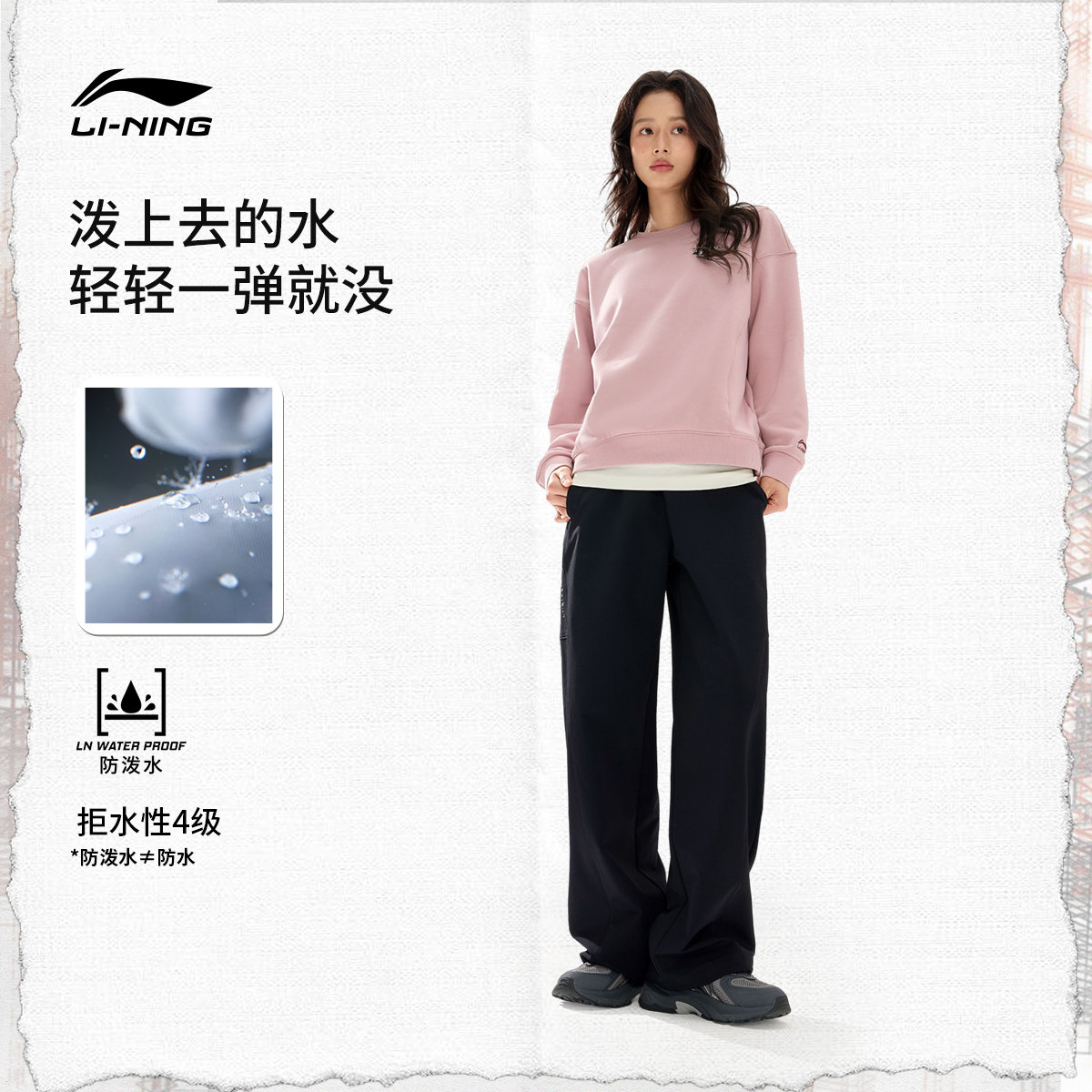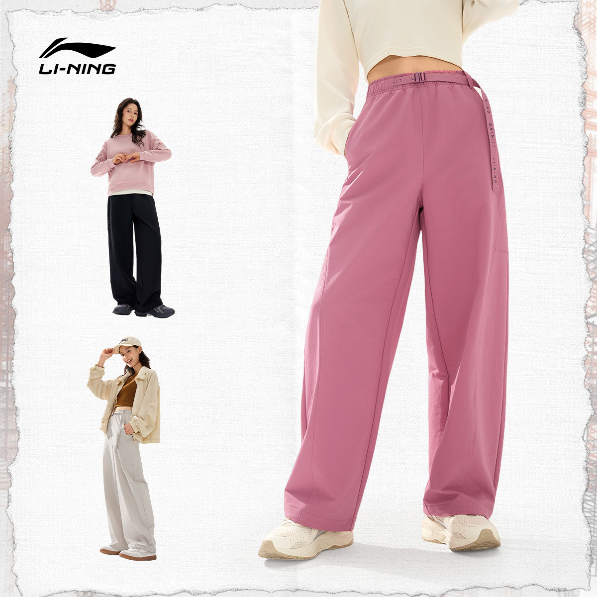李宁C位裤丨工装阔腿裤女士新款冬季休闲加绒保暖直筒梭织运动裤