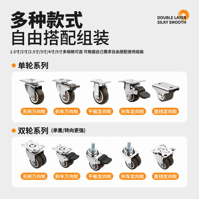 承重万向轮小号超静音家具茶几移动滑轮榻榻米抽屉定向轮重型轮子