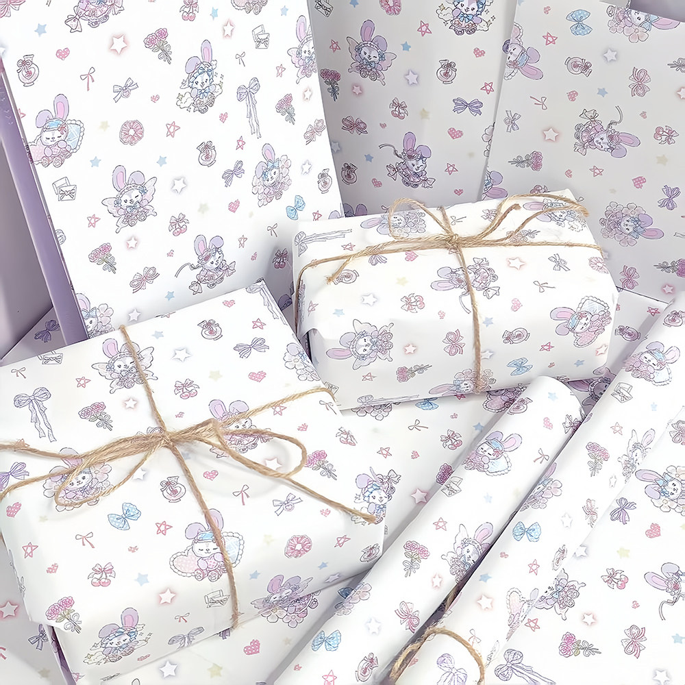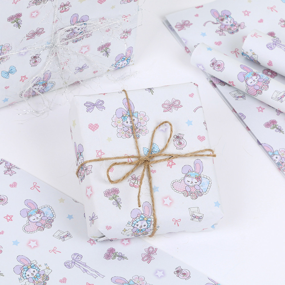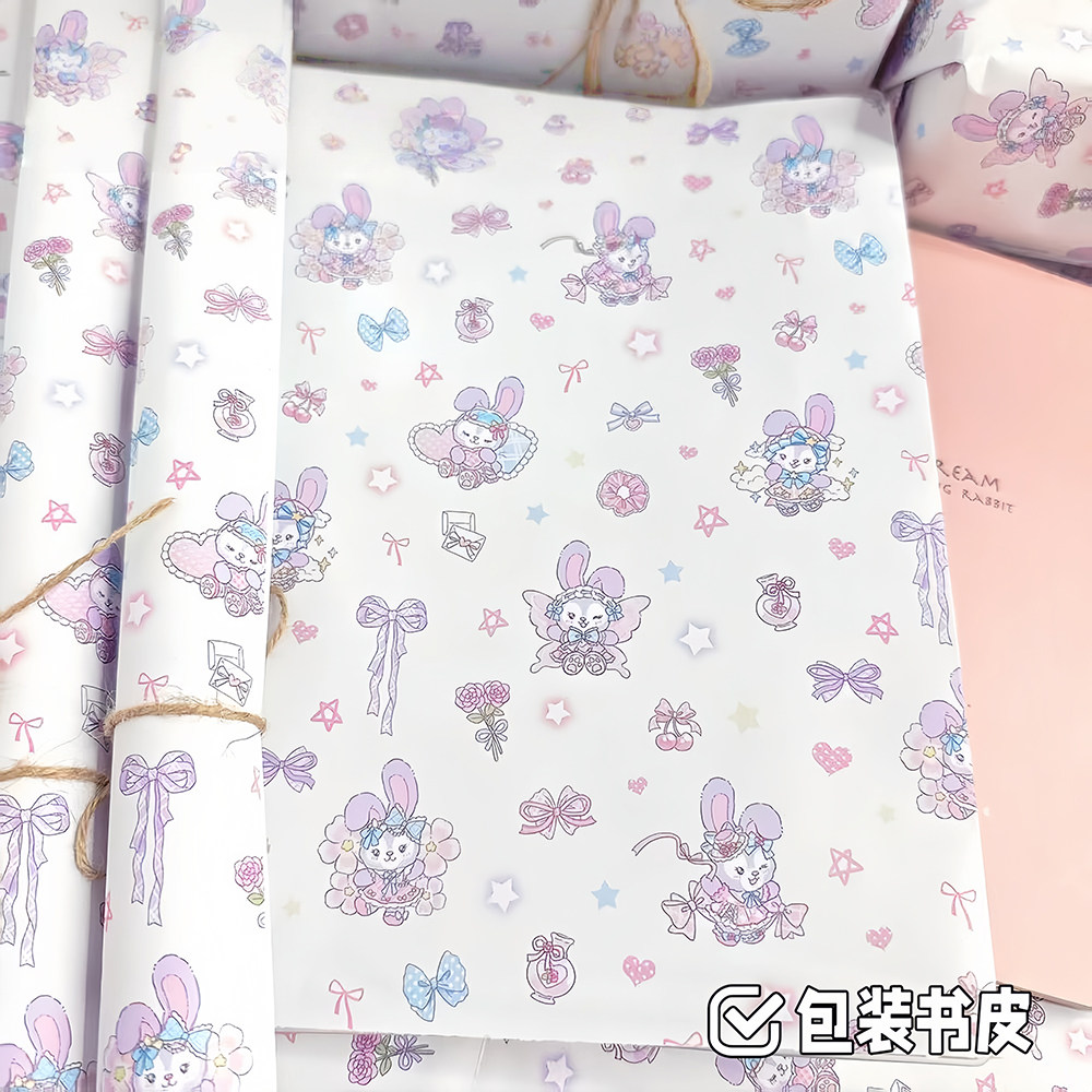 卡通长耳兔兔包装纸高颜值韩系小清新精美书本礼盒素材纸可裁剪