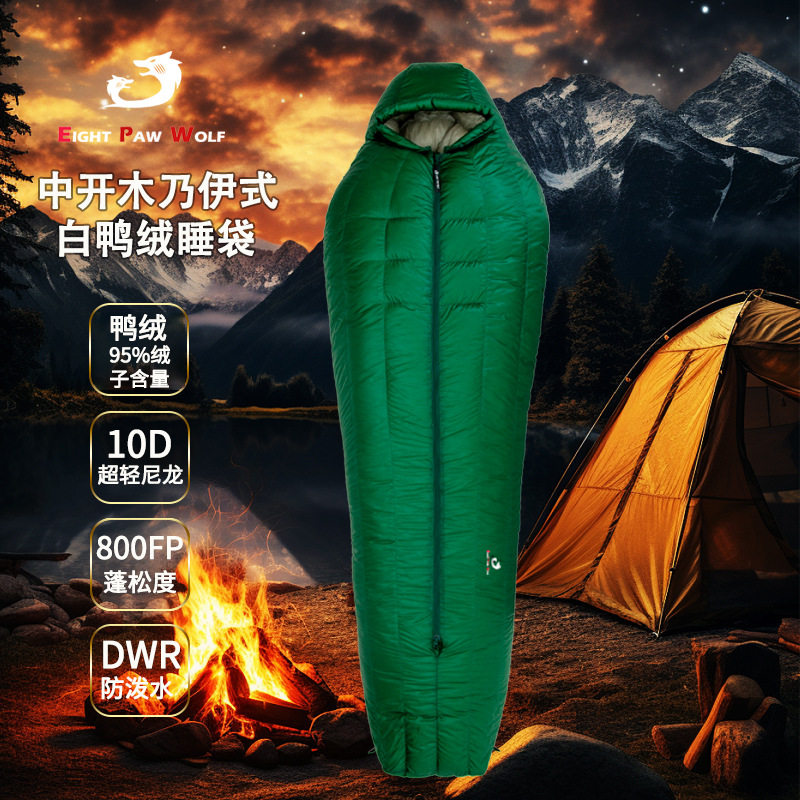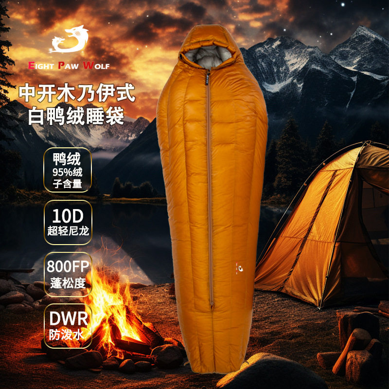 EIGHT PAW WOLF 野营睡袋800蓬10D羽绒超轻睡袋加厚木乃伊睡袋