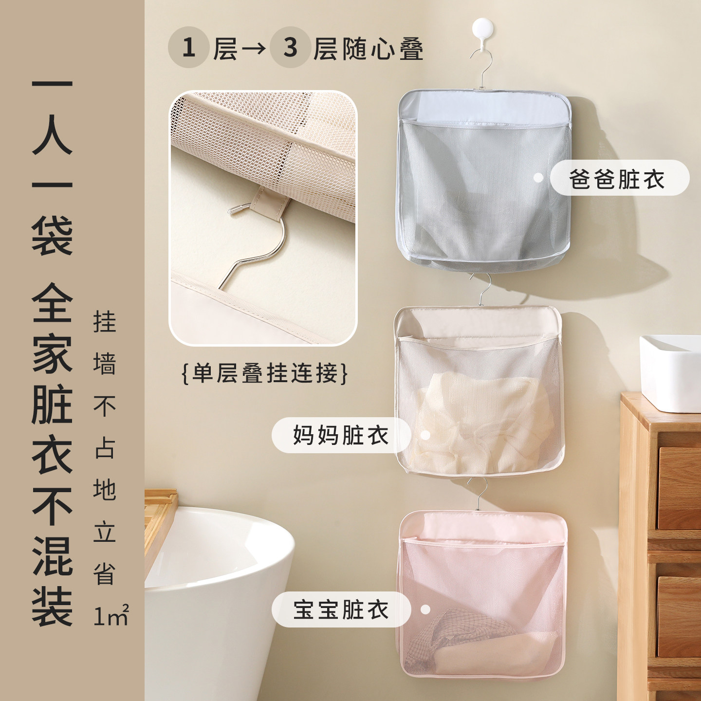 天纵脏衣服收纳袋浴室壁挂脏衣篮篓卫生间挂式网兜脏衣袋收纳神器
