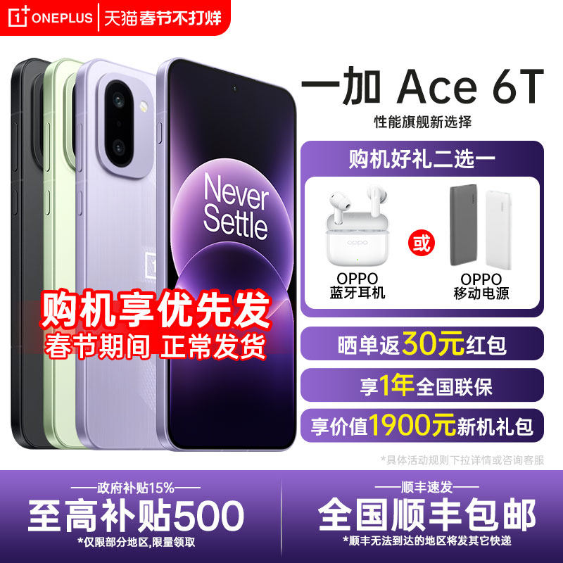 【政府补贴】OnePlus/一加 Ace 6T 一加ace6系列新款游戏手机oppo一加官方旗舰店官网正品ace5pro竞速至尊版