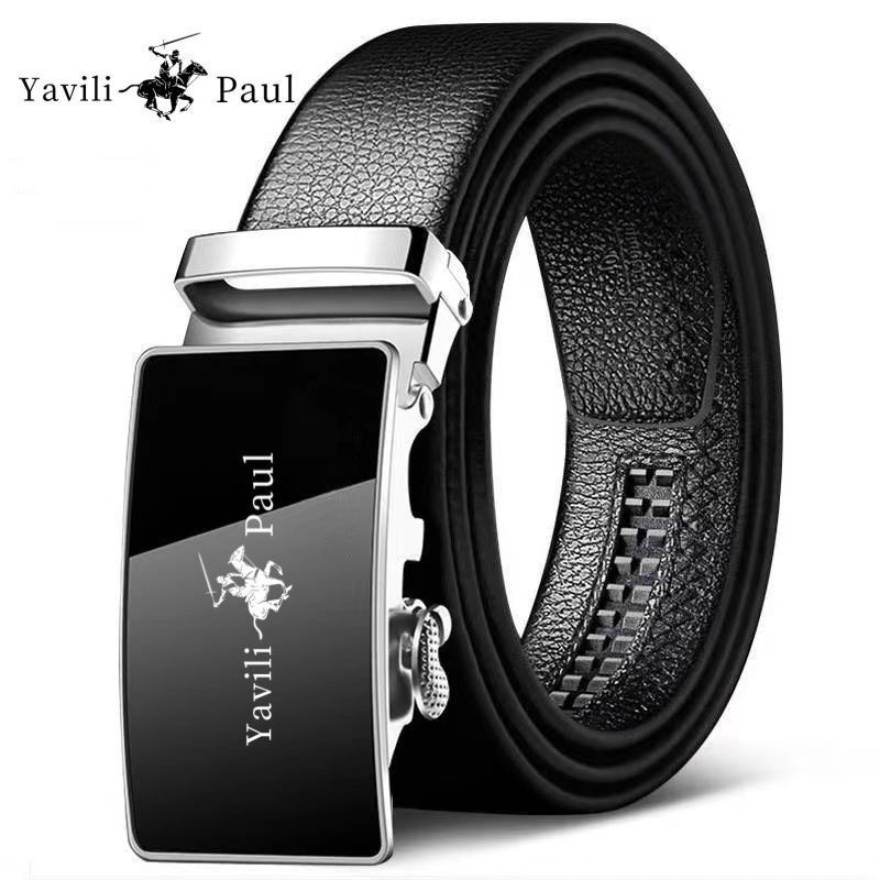 保罗男士商务腰带皮带高档自动牛皮裤带头层荔枝纹男友针扣送爸爸