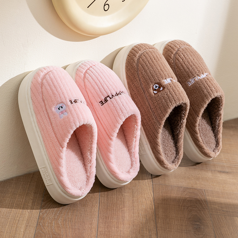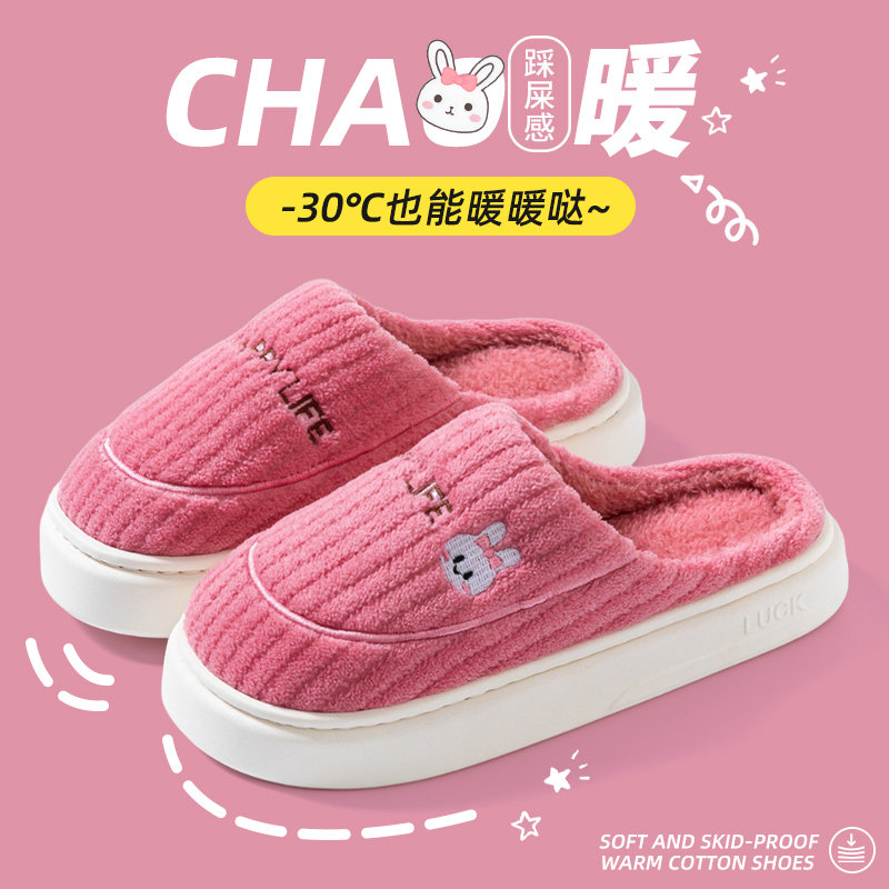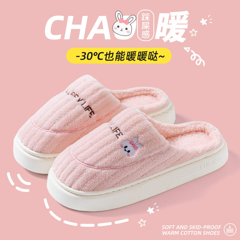 棉拖鞋女士秋冬季室内家居家防滑厚底月子踩屎感毛毛绒保暖情侣男