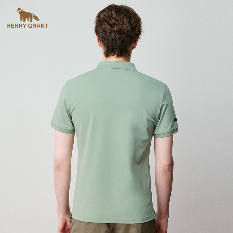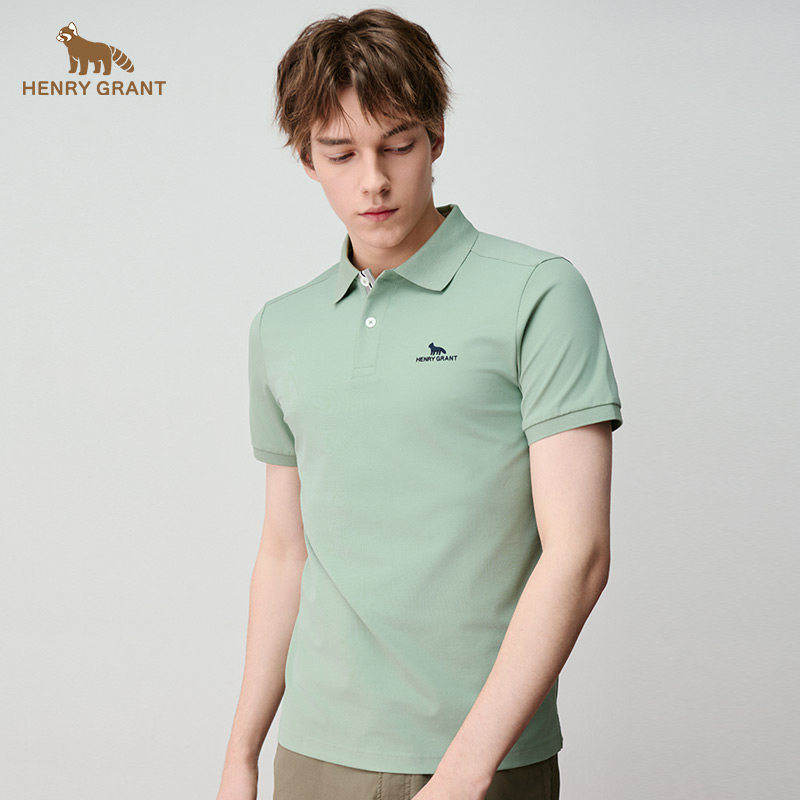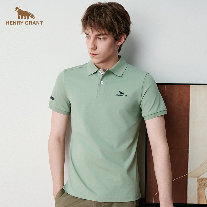 亨利格兰小熊猫夏季新品男士运动户外简约百搭polo衫翻领短袖t恤