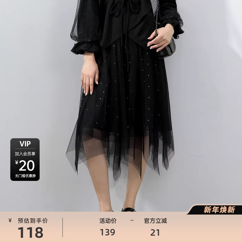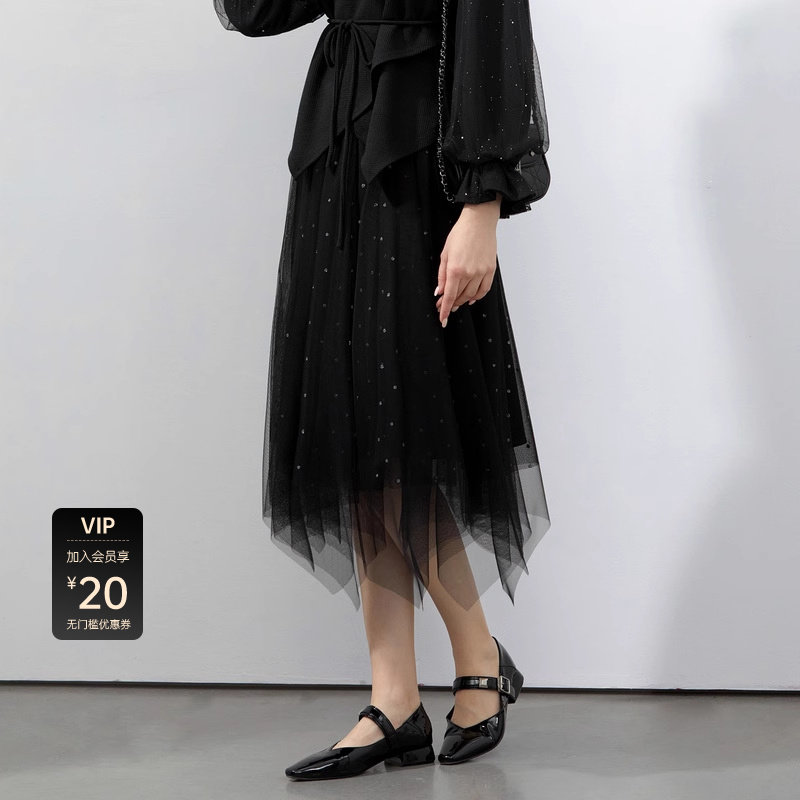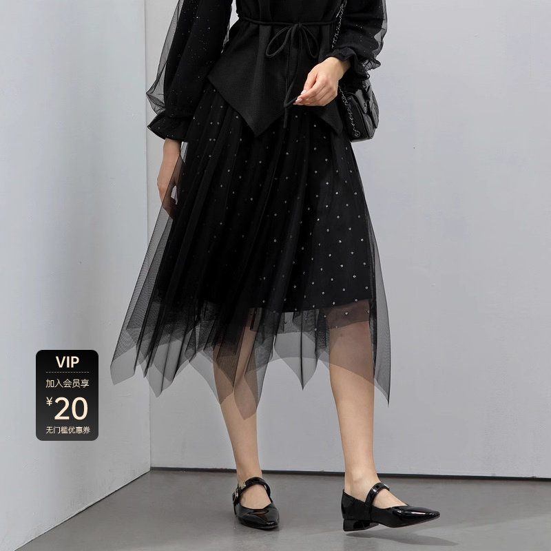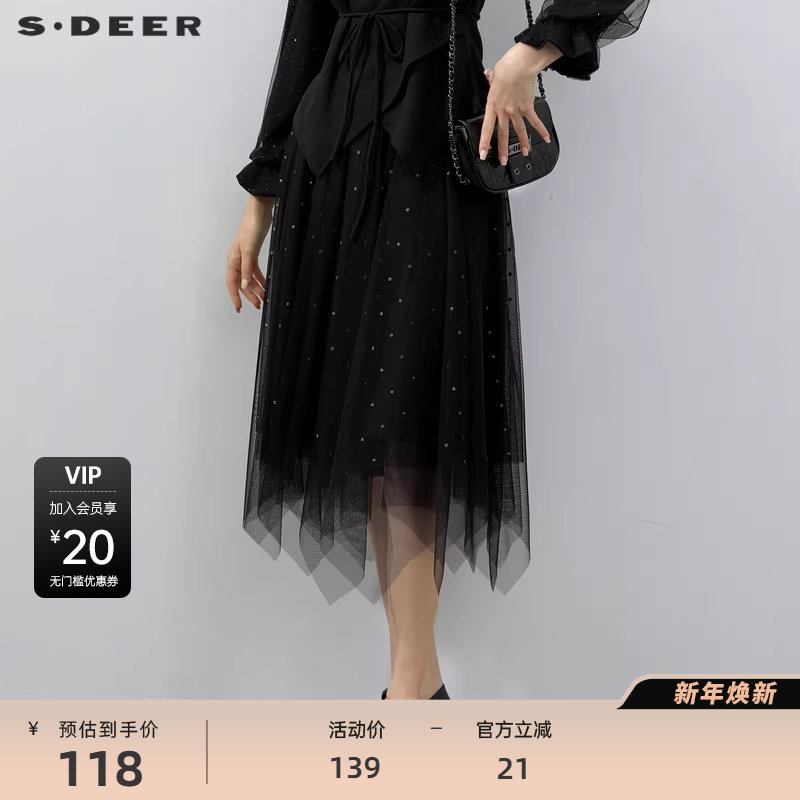 sdeer圣迪奥女装秋松紧星光网纱不规则A字伞裙S231Z1115