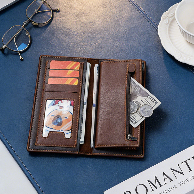 2025新款长款双拉链钱包男士护照皮夹软皮大容量真皮质感手包商务