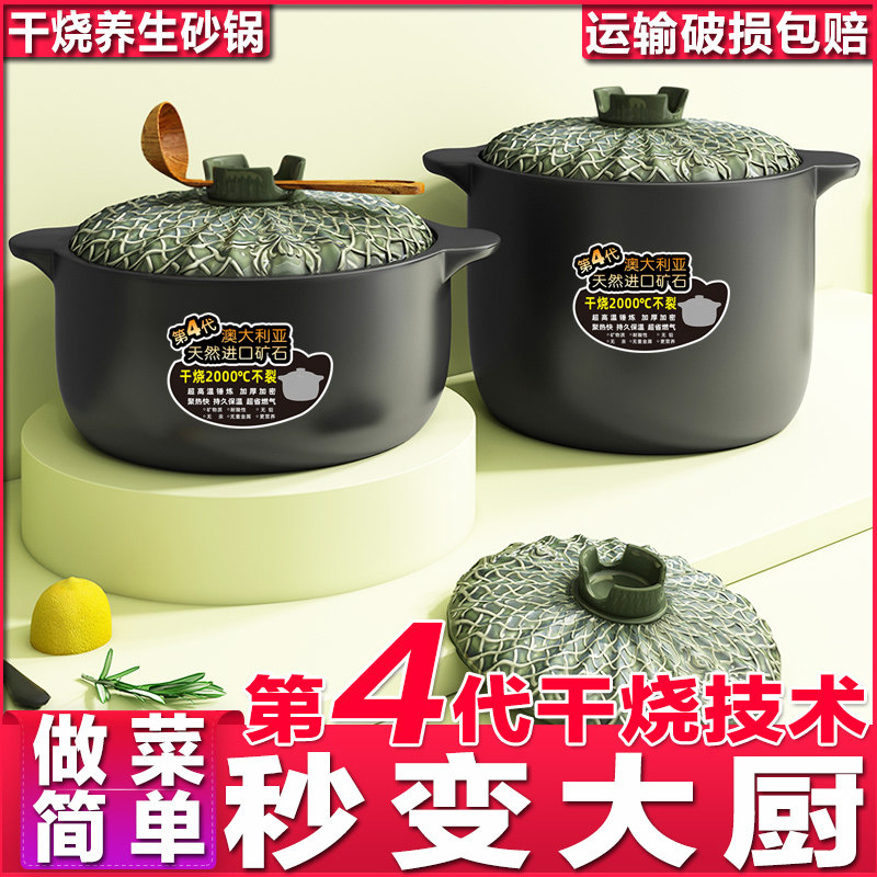 砂锅耐高温炖锅家用煲汤明火瓦罐干烧不裂陶瓷煲大沙锅燃气煤气灶