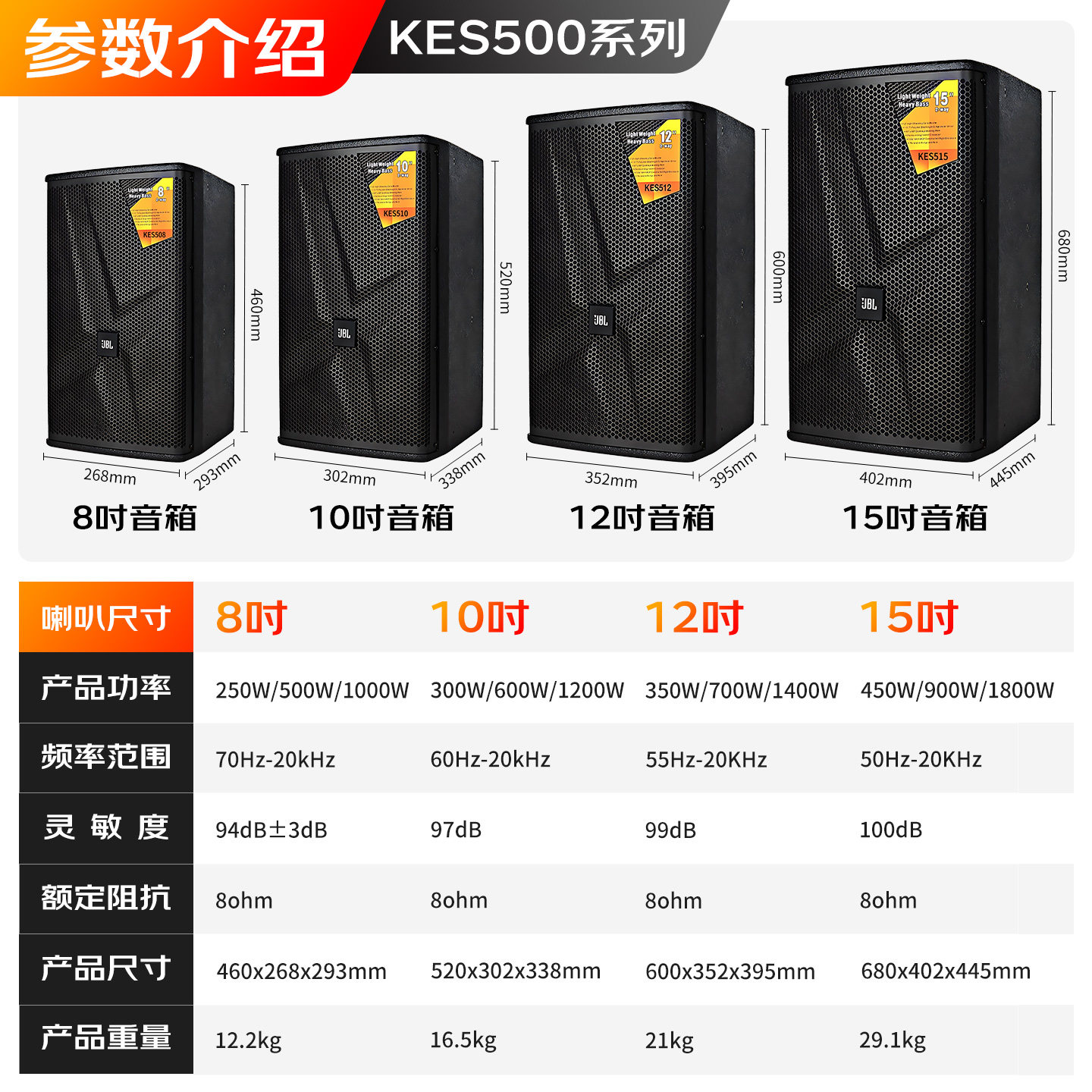 JBL KES508/10/12/15专业音响高端娱乐酒吧舞台会议家用KTV音箱