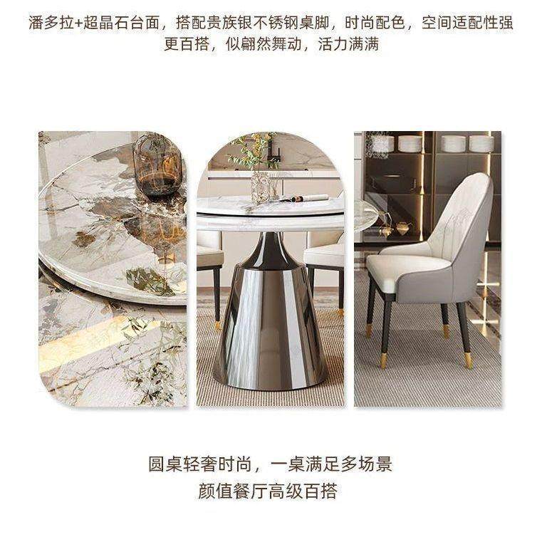 轻奢天然超晶石餐桌椅组合微晶石圆桌现代简约家用岩板餐桌小户型