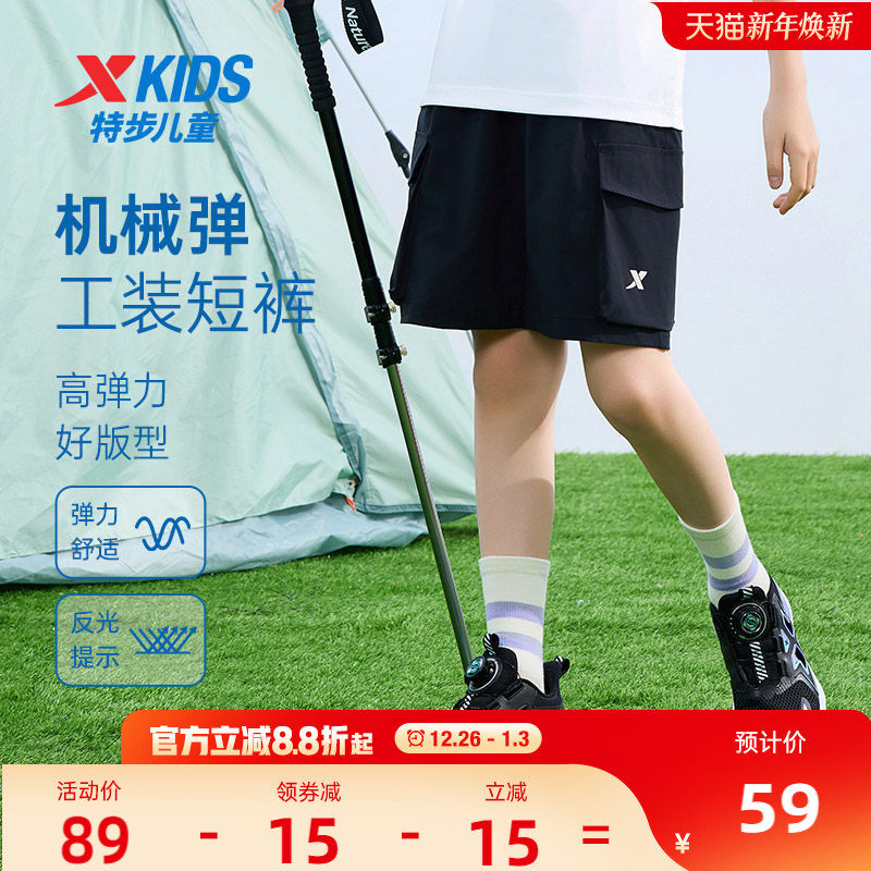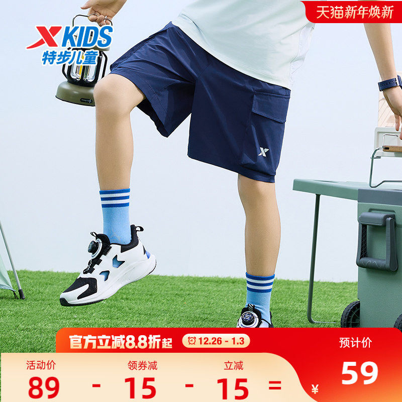 特步童装男童速干工装五分裤2025夏季新款儿童短裤中大童运动夏装