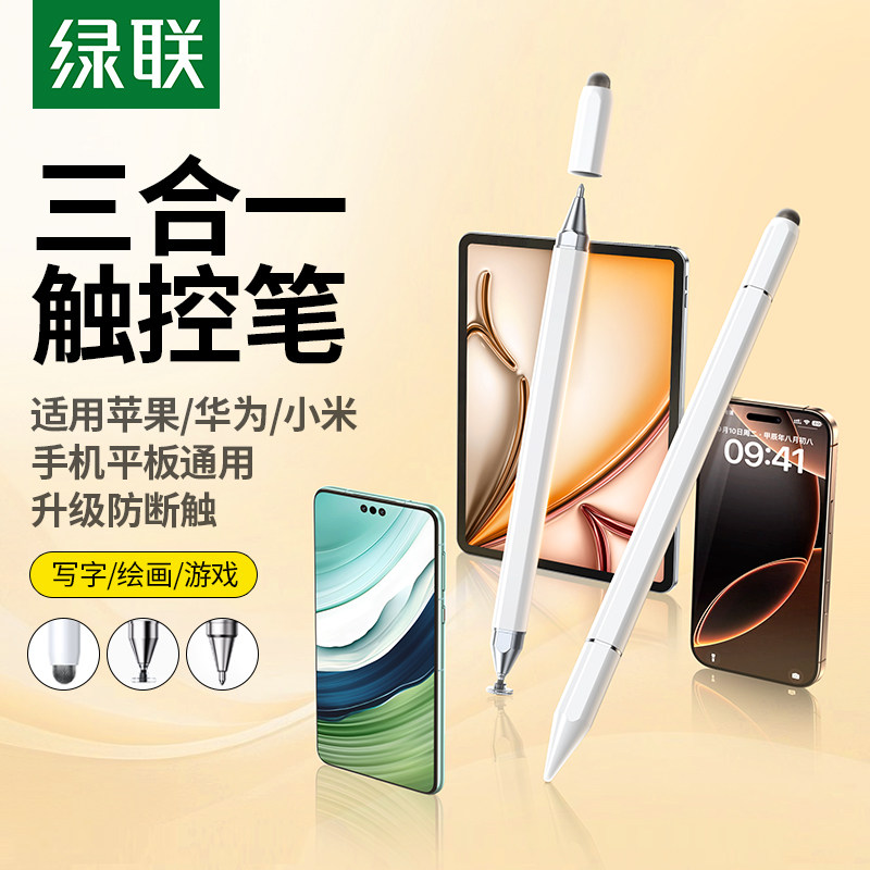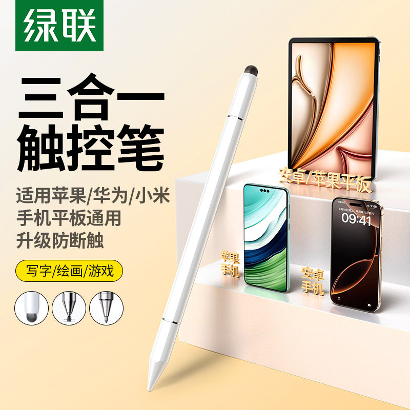 绿联电容笔平板手机触控笔适用iPad苹果apple pencil安卓华为小米磁吸三合一手写学习游戏剪辑绘画通用触屏笔