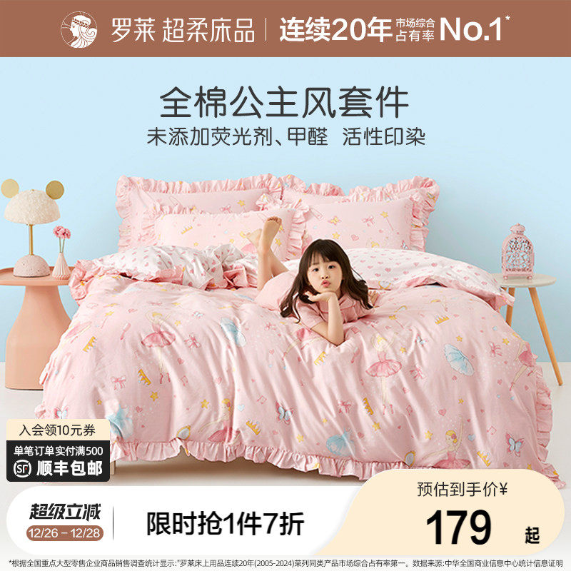 罗莱家纺儿童四件套纯棉女孩床单全棉套件公主风床上用品三件套