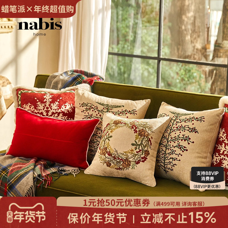 蜡笔派花环抱枕轻奢复古客厅沙发睡觉靠垫节日红色喜庆卧室定制