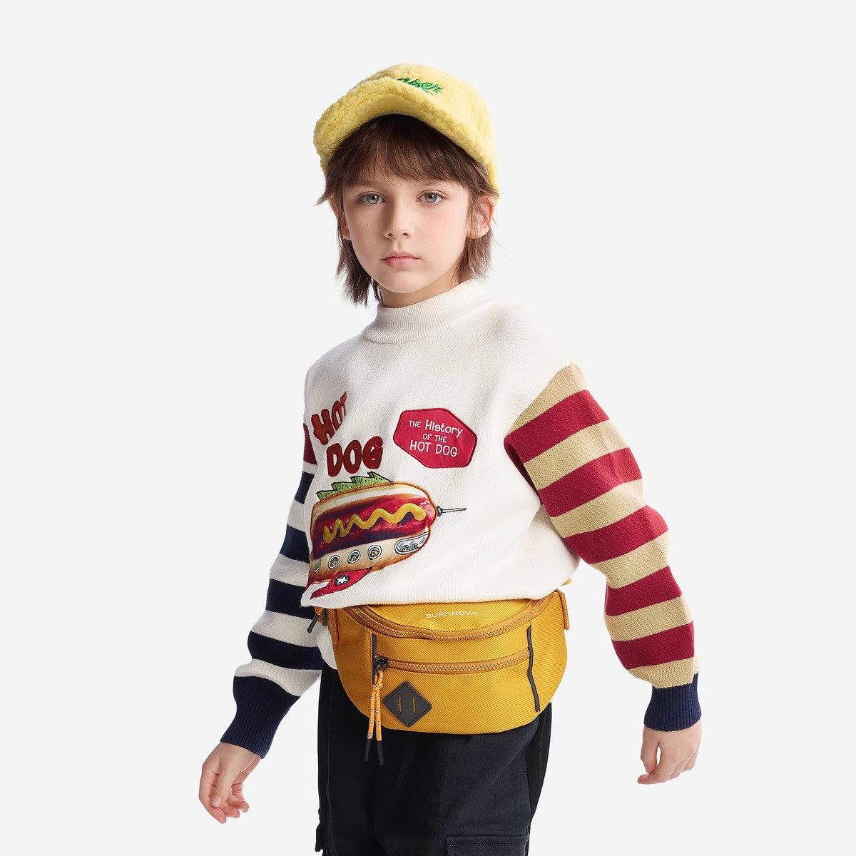 [李佳琦推荐][抗静电起球]齐齐熊男童毛衣加厚冬款条纹半高领宝宝