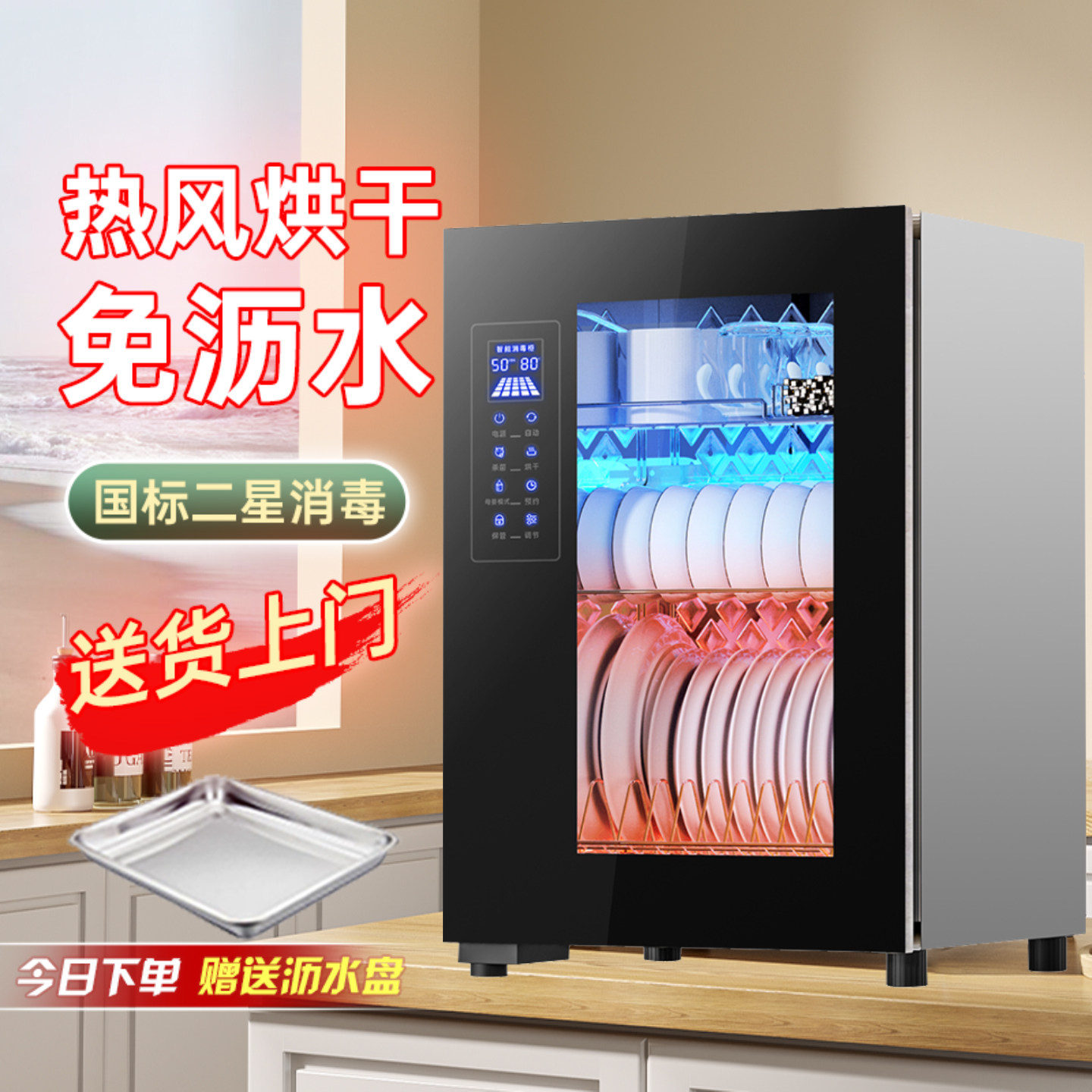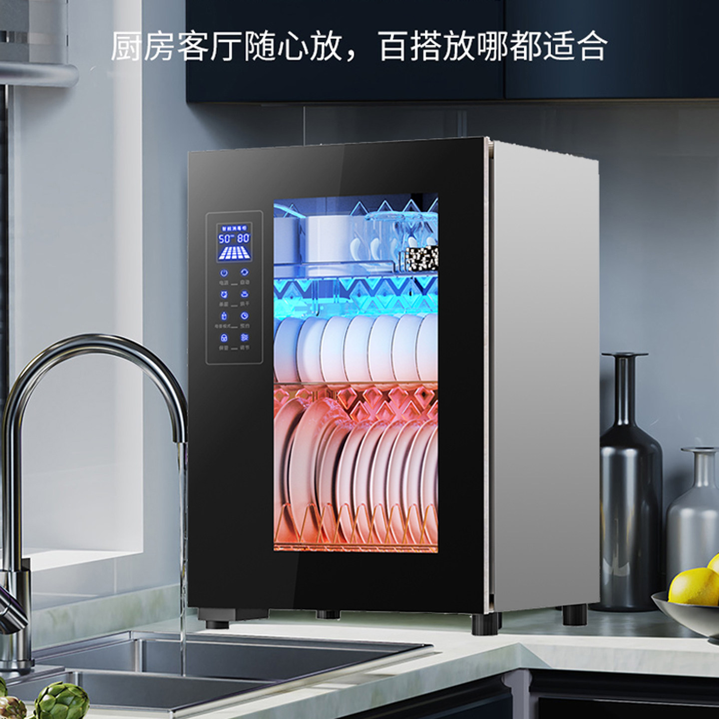 宝厨好太太消毒柜家用小型台式厨房餐具高温紫外线不锈钢二星碗柜