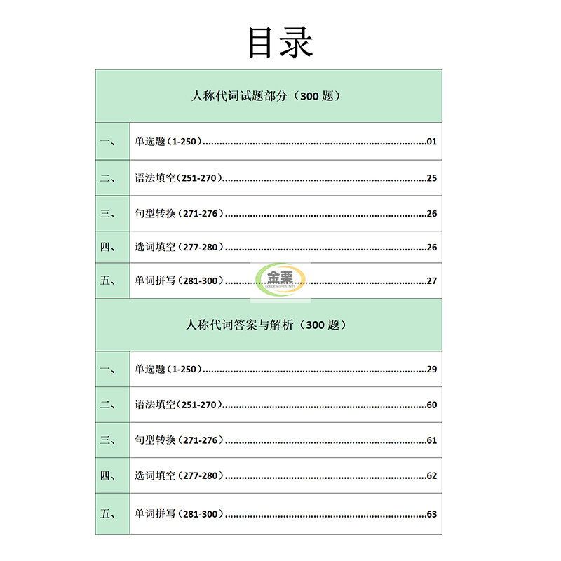 初中英语人称代词专项练习册含思维导图解析300题初中中考通用