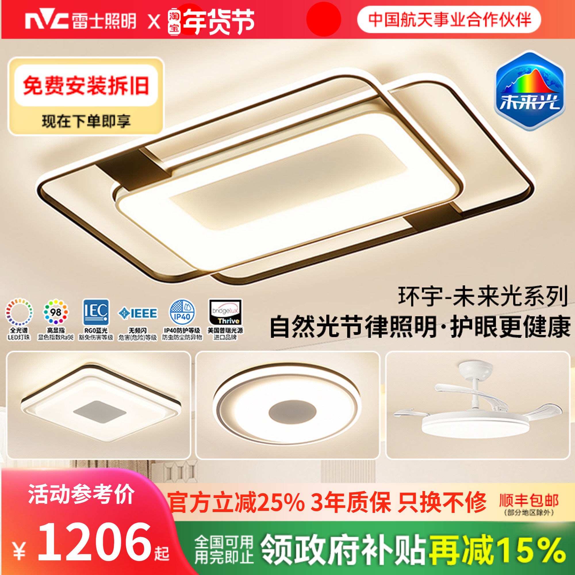 雷士照明吸顶灯客厅主灯2025新款全屋灯具全光谱护眼环宇未来光