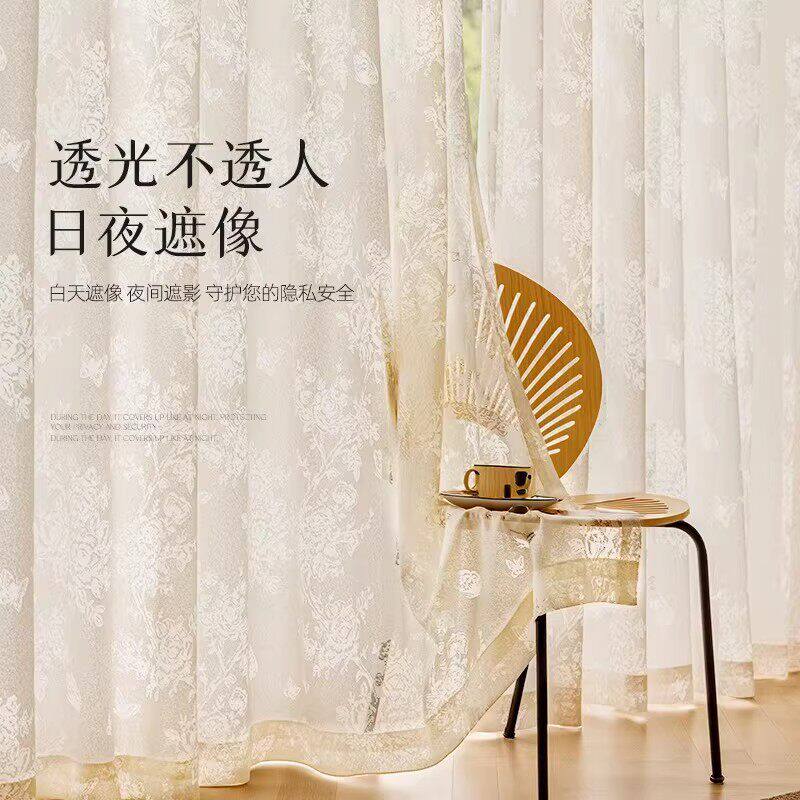 蝴蝶纱法式浪漫窗帘遮光新款客厅飘窗透光不透人高级感窗纱帘