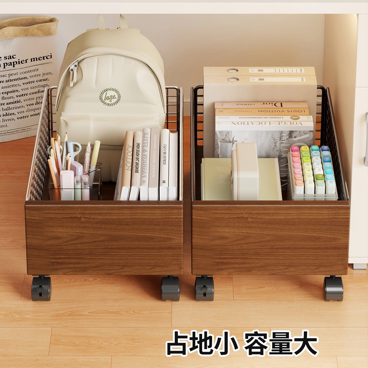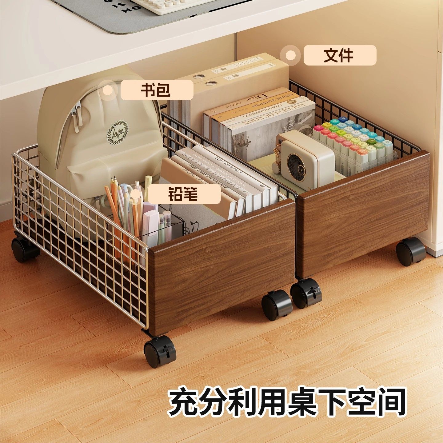 桌下书包置物架工位放包神器书桌下书本收纳箱多功能可移动小推车