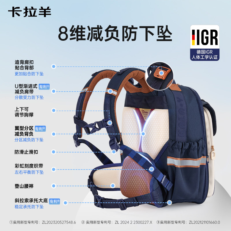 【老爸评测合作款】卡拉羊小学生双肩包减负云朵书包8维防下坠