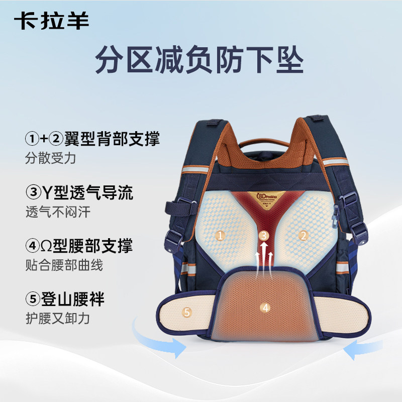 卡拉羊中学生云朵书包减负防下坠双肩包男大容量轻便抑菌背包女
