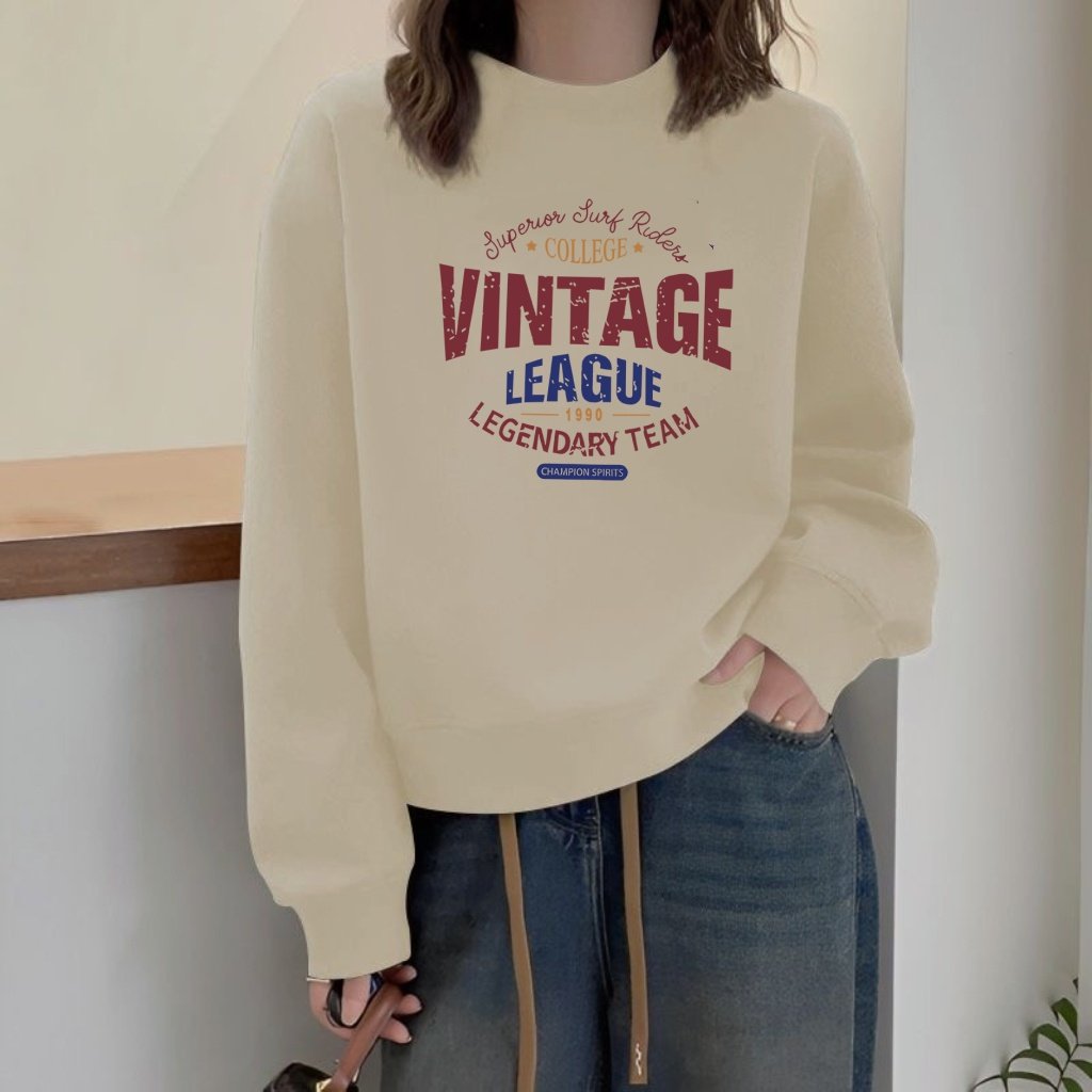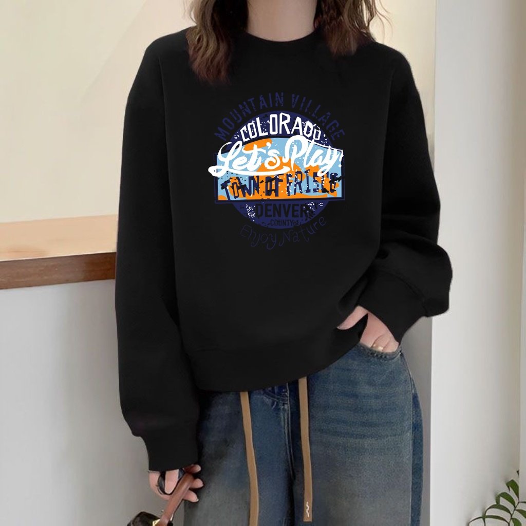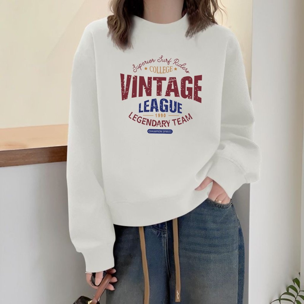 宽松显瘦圆领卫衣女2024年秋冬新品长袖套头粉色印花上衣加绒加厚