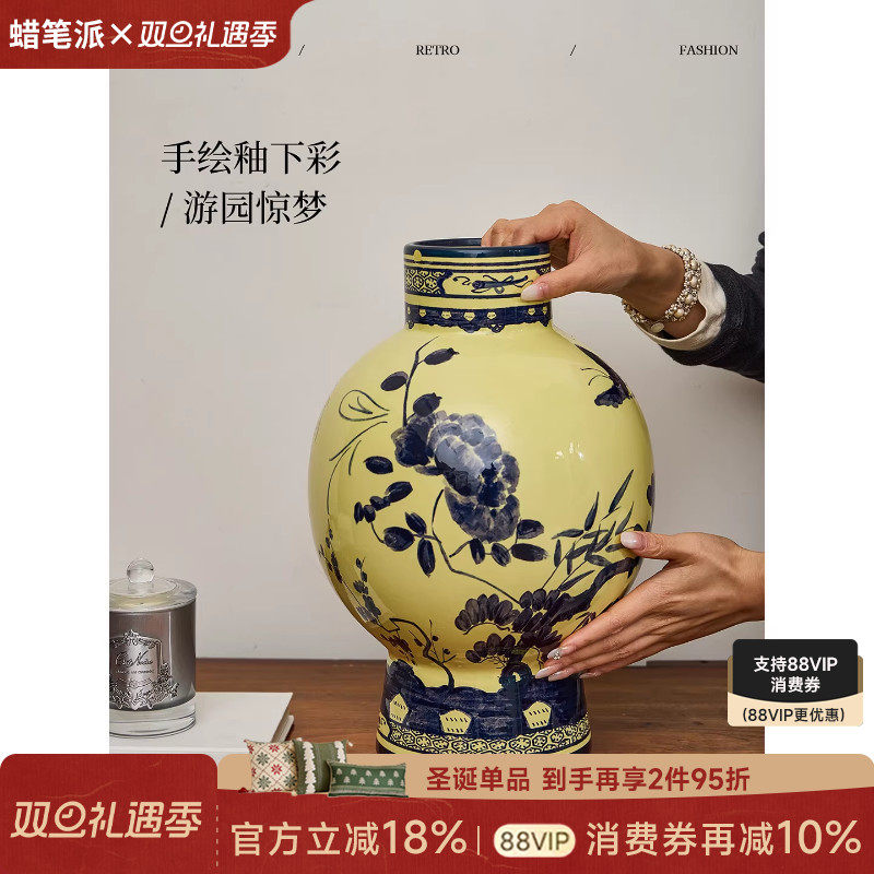 蜡笔派游园惊梦花瓶新中式复古客厅玄关陶瓷插花摆件乔迁新婚礼物