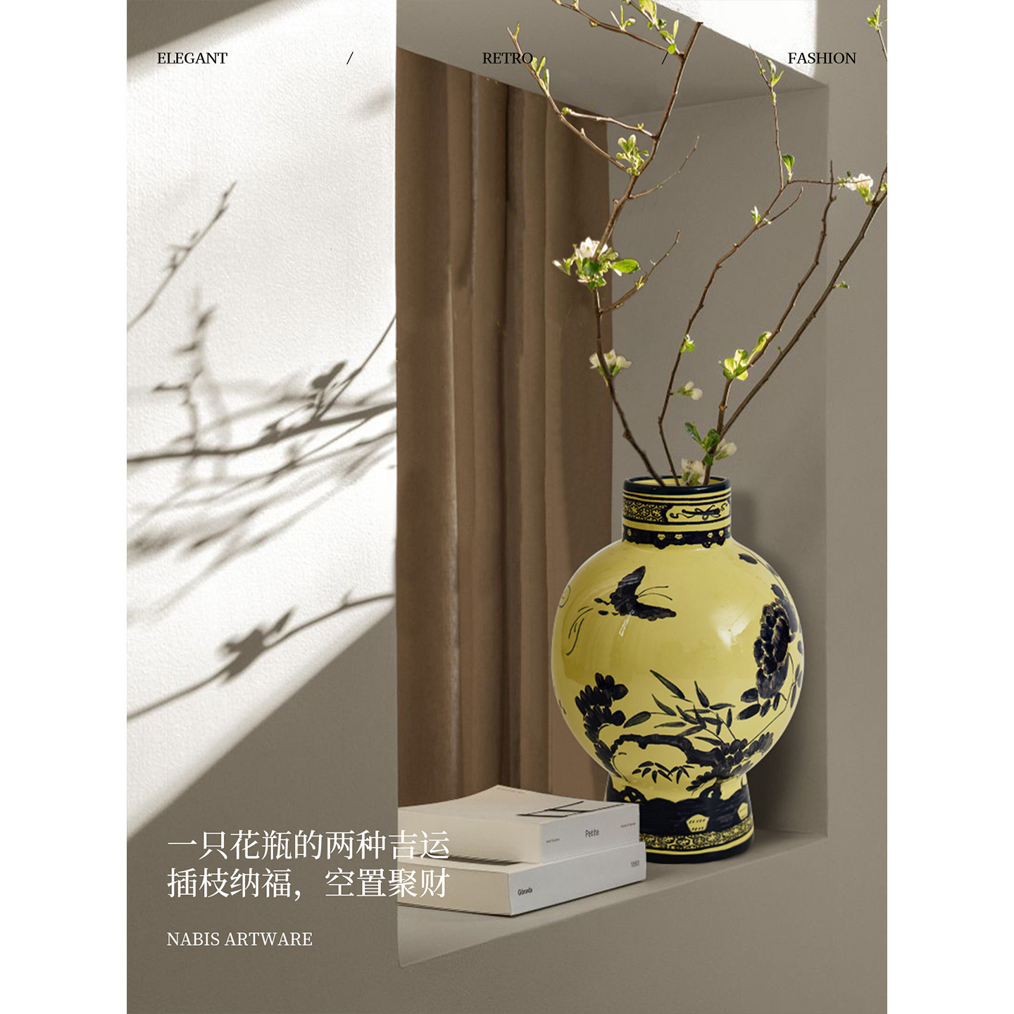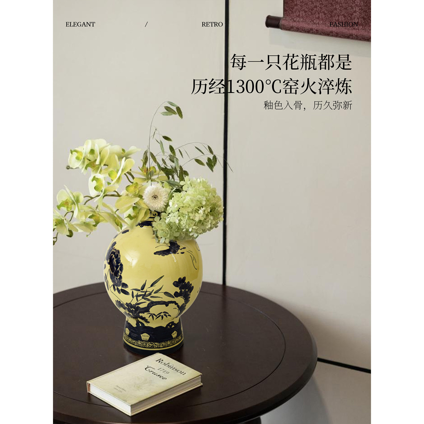新中式复古陶瓷插花客厅玄关摆件乔迁新婚