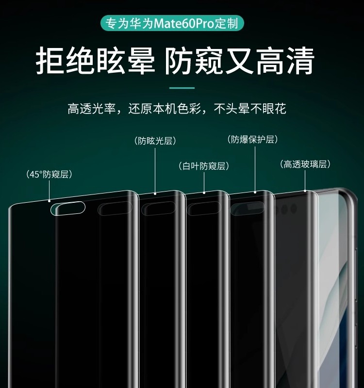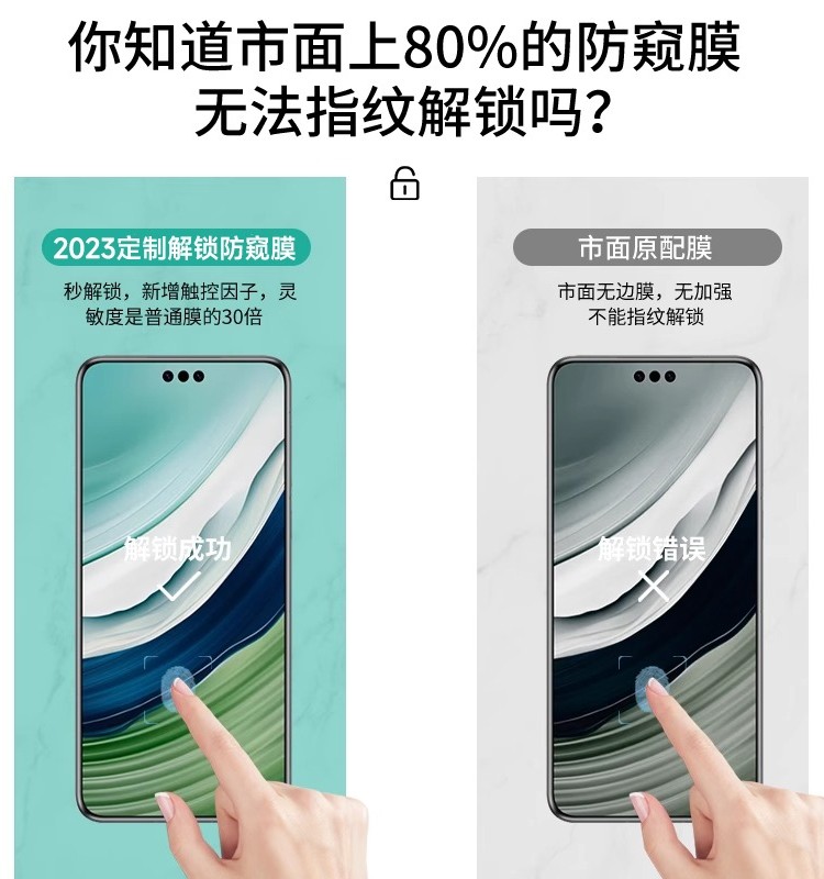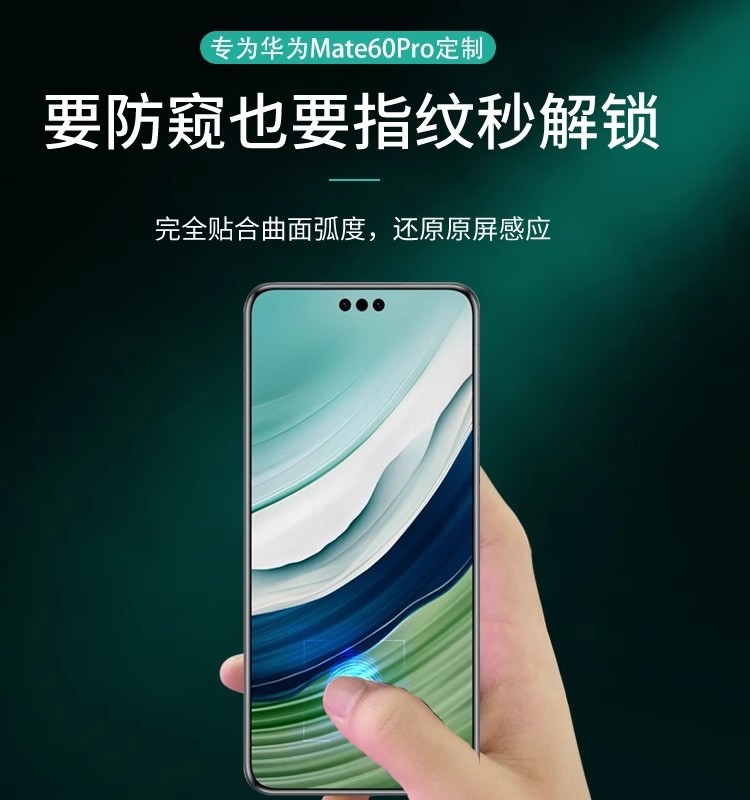 华为mate60pro防窥膜mate80/70/50/40/30RS保时捷指纹解锁防偷窥nova14/13手机水凝保护贴膜pura80ultra适用